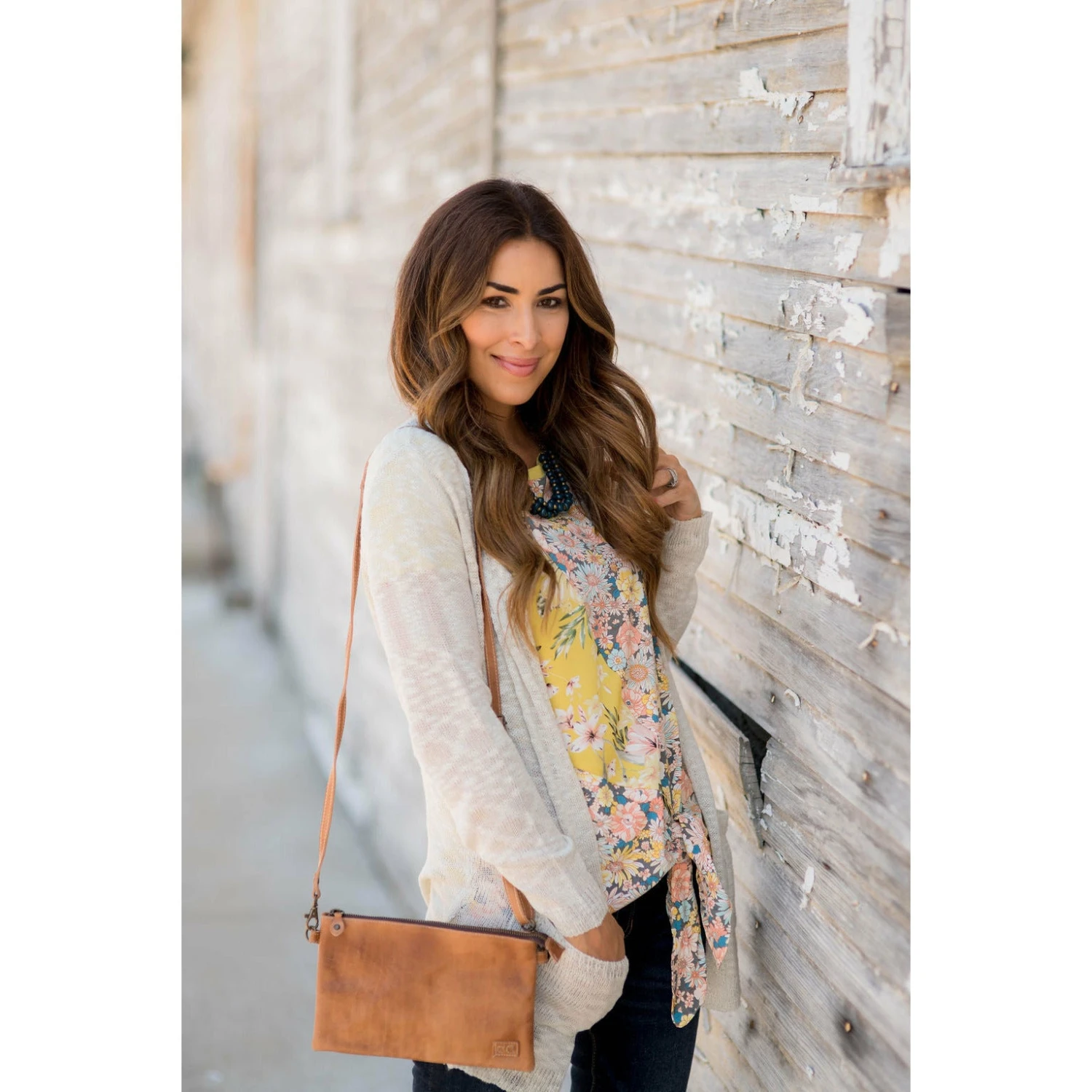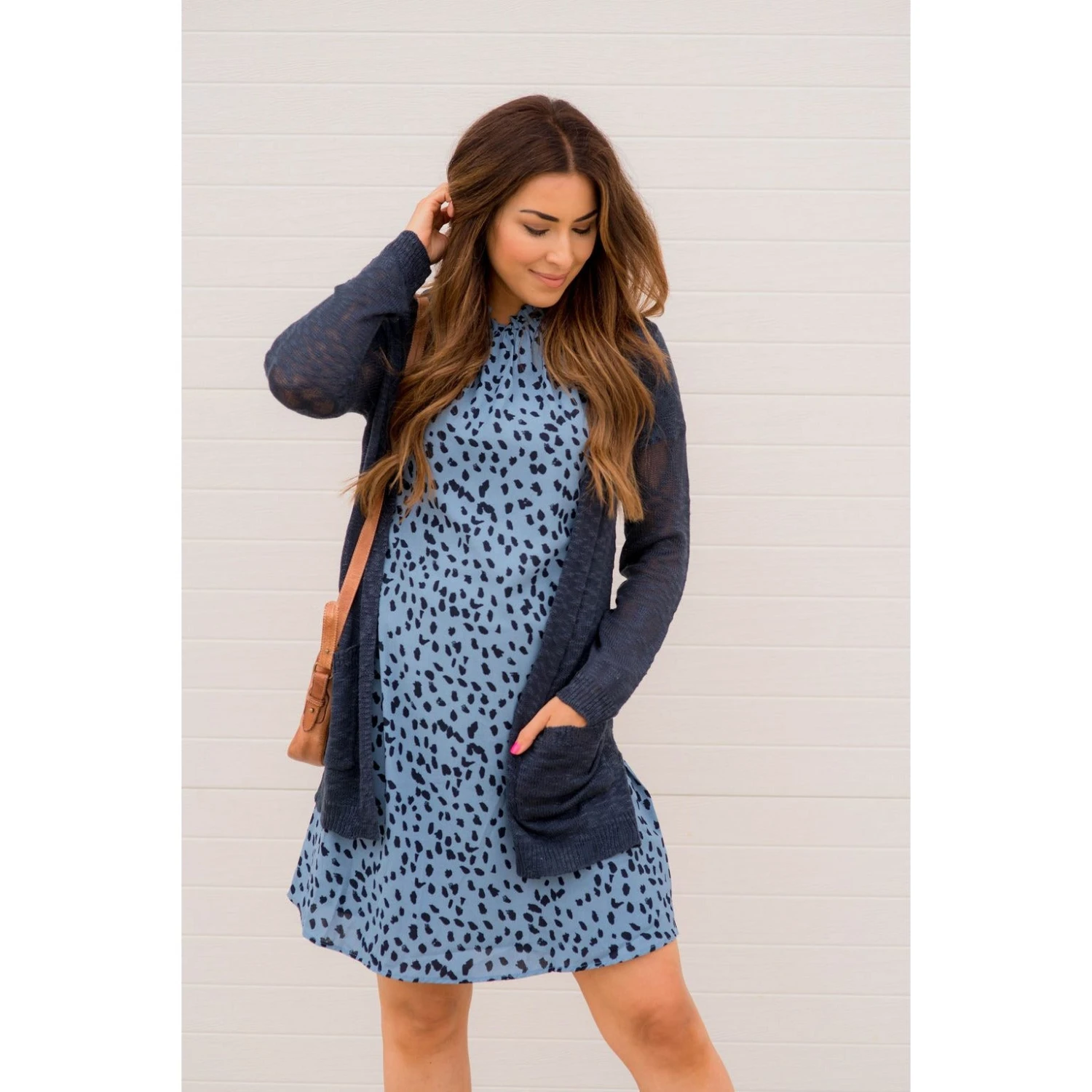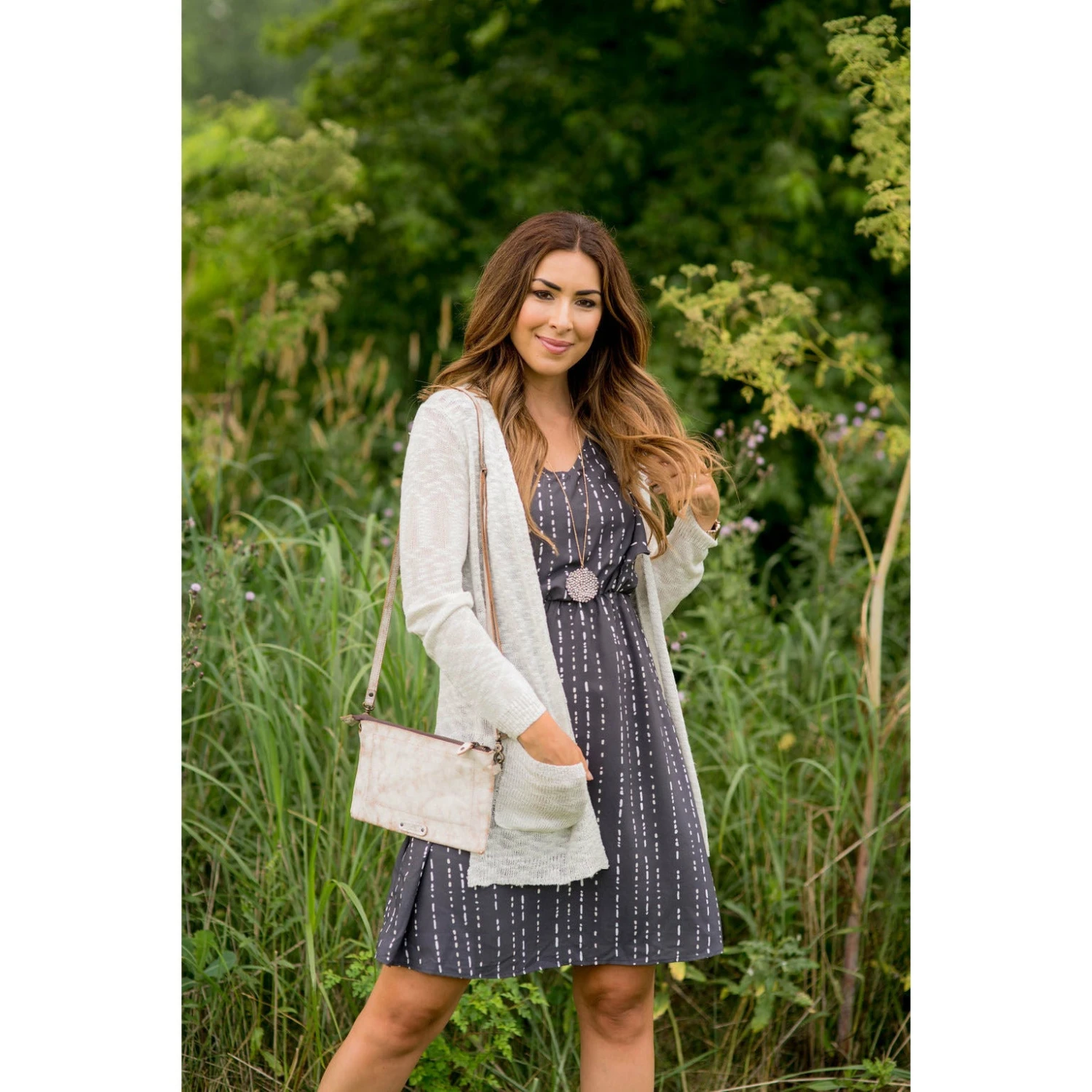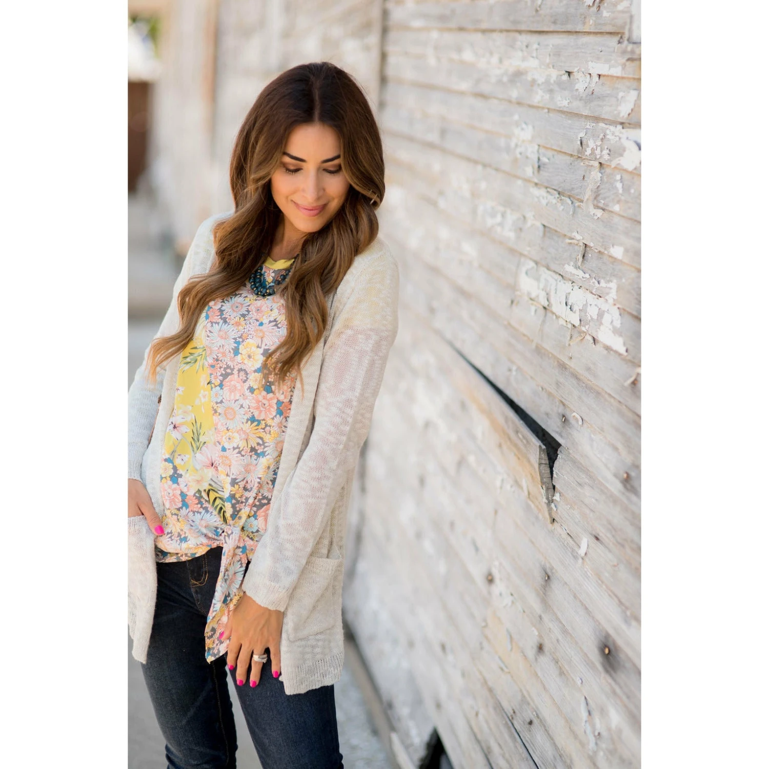 This cardigan is a bit thinner, so perfect for layering and during those cooler summer days! Wear this with leggings and a basic tee!
