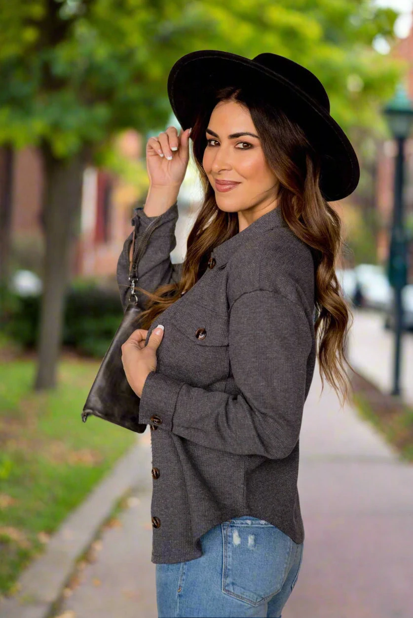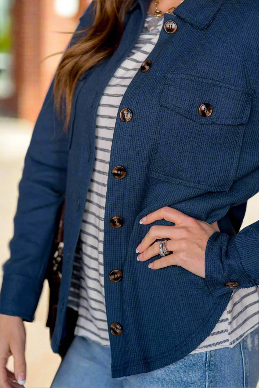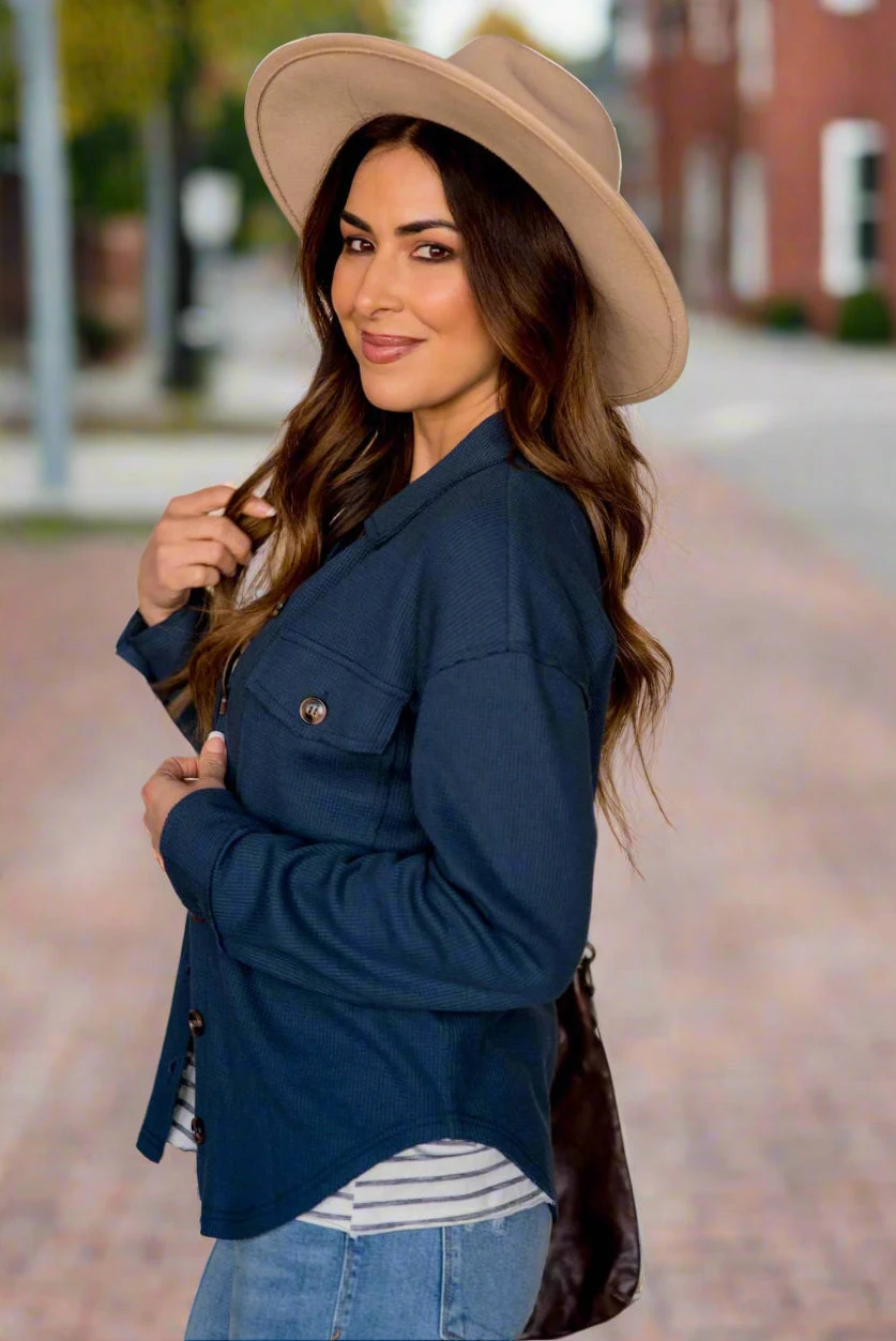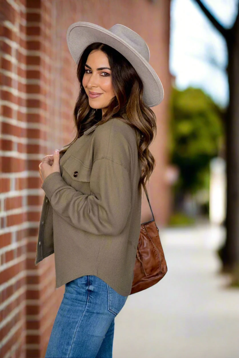 Shackets are super trendy right now and we know why! They are the perfect in-between of a jacket and shirt, making them ideal to transition you through seasons! We love that they can be dressed up or down by throwing them over any outfit, and can even take a simple look to the next level! The thermal texture and raw edge detailing really sets this one apart from the rest!