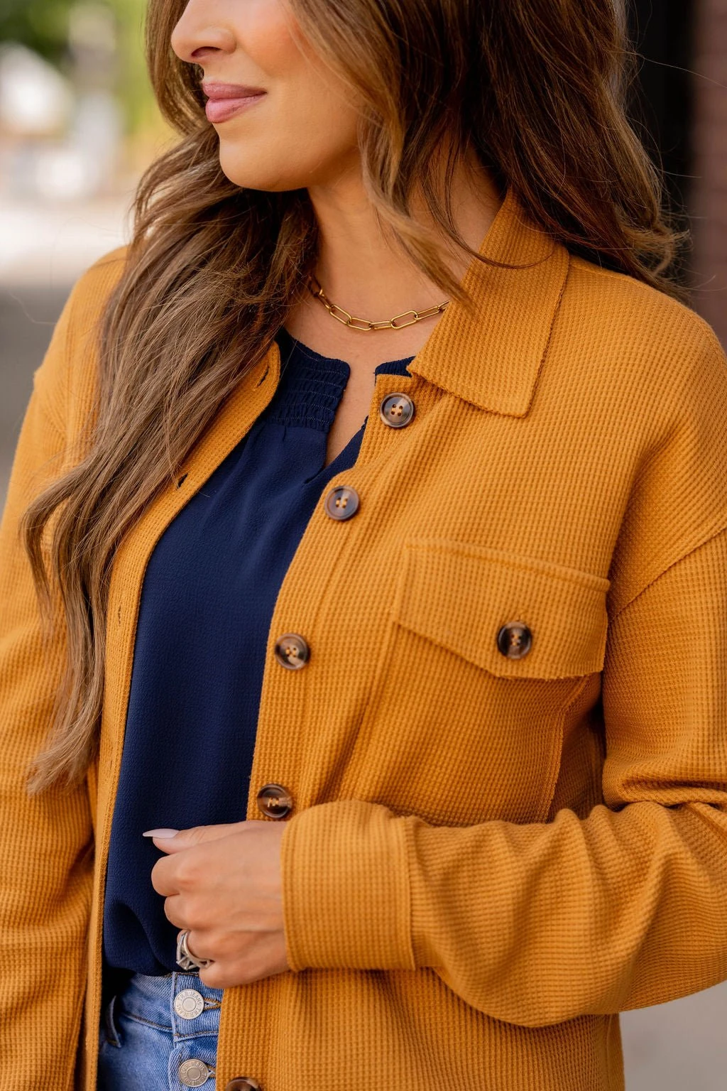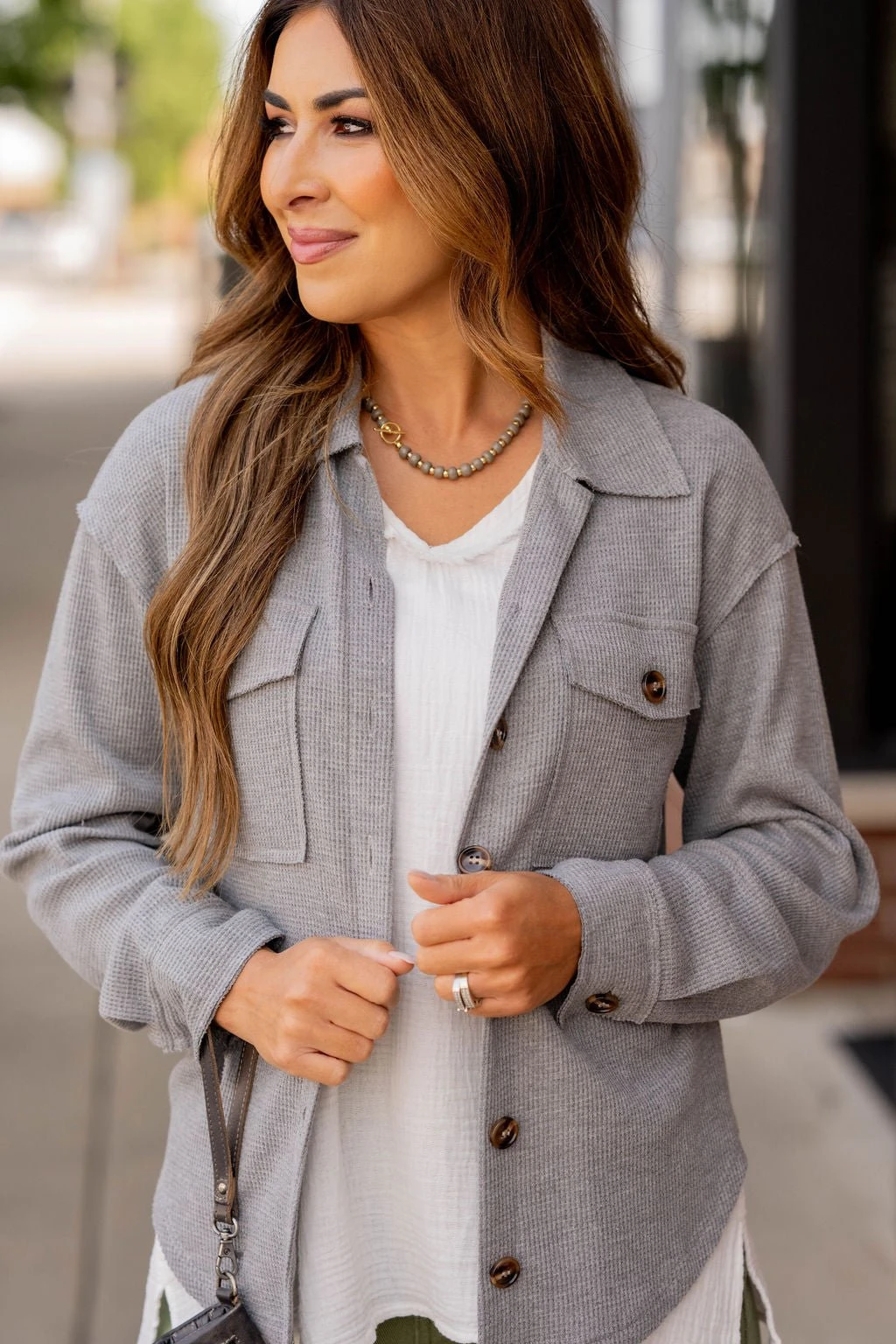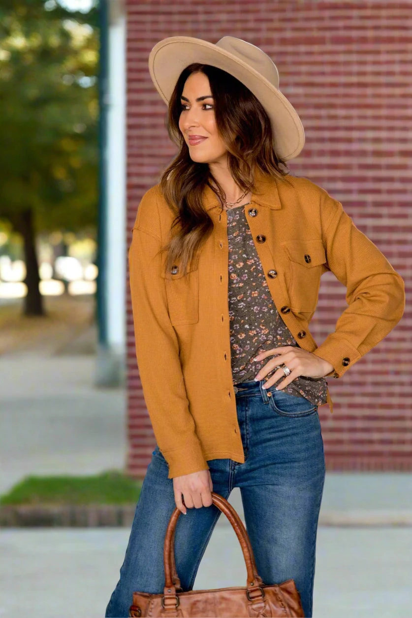 Shackets are super trendy right now and we know why! They are the perfect in-between of a jacket and shirt, making them ideal to transition you through seasons! We love that they can be dressed up or down by throwing them over any outfit, and can even take a simple look to the next level! The thermal texture and raw edge detailing really sets this one apart from the rest!