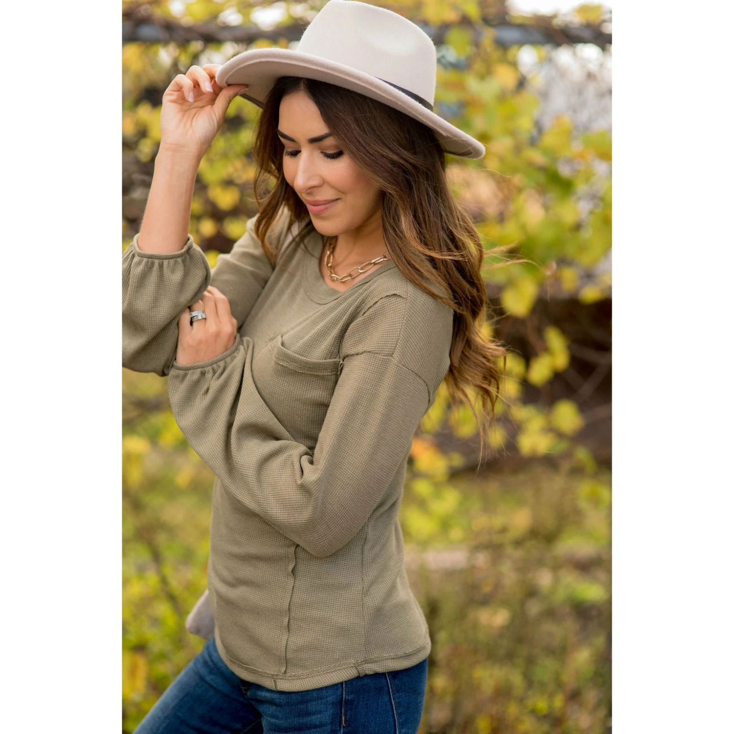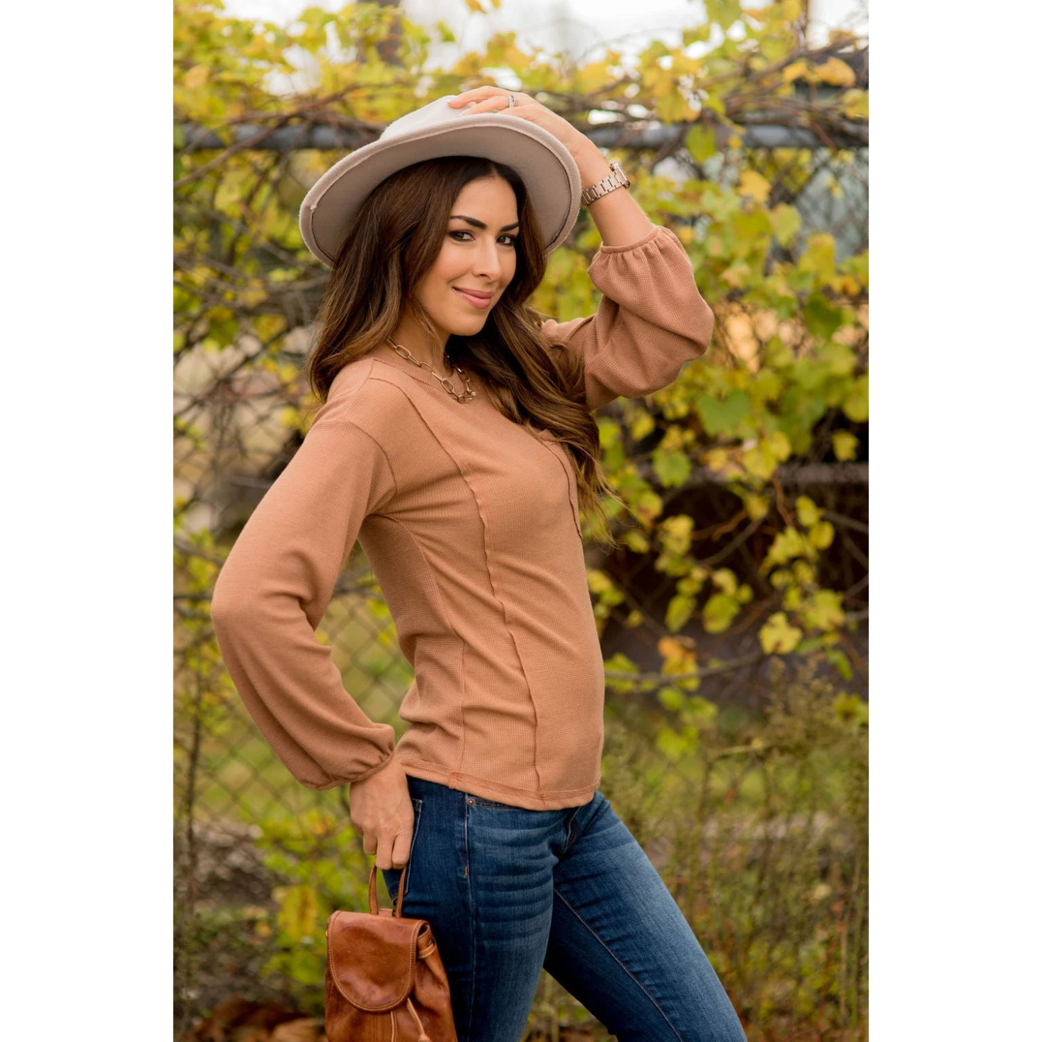 Looking for a basic long sleeve tee that gives off just enough of a different pop with its cinched sleeves, that you are going to want to wear this constantly! It is a great layering piece for cardigans or a vest, and is amazing to wear with jeans!