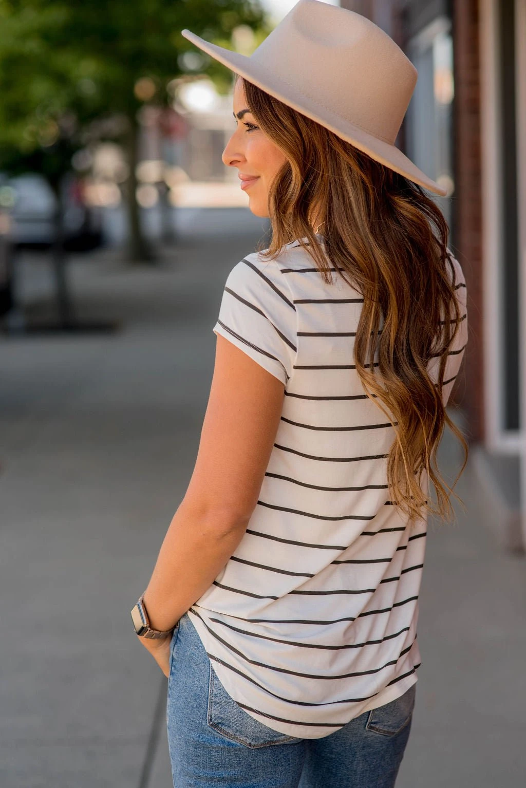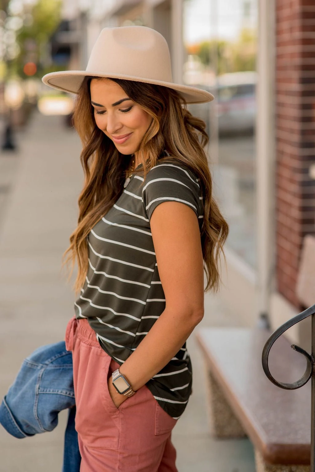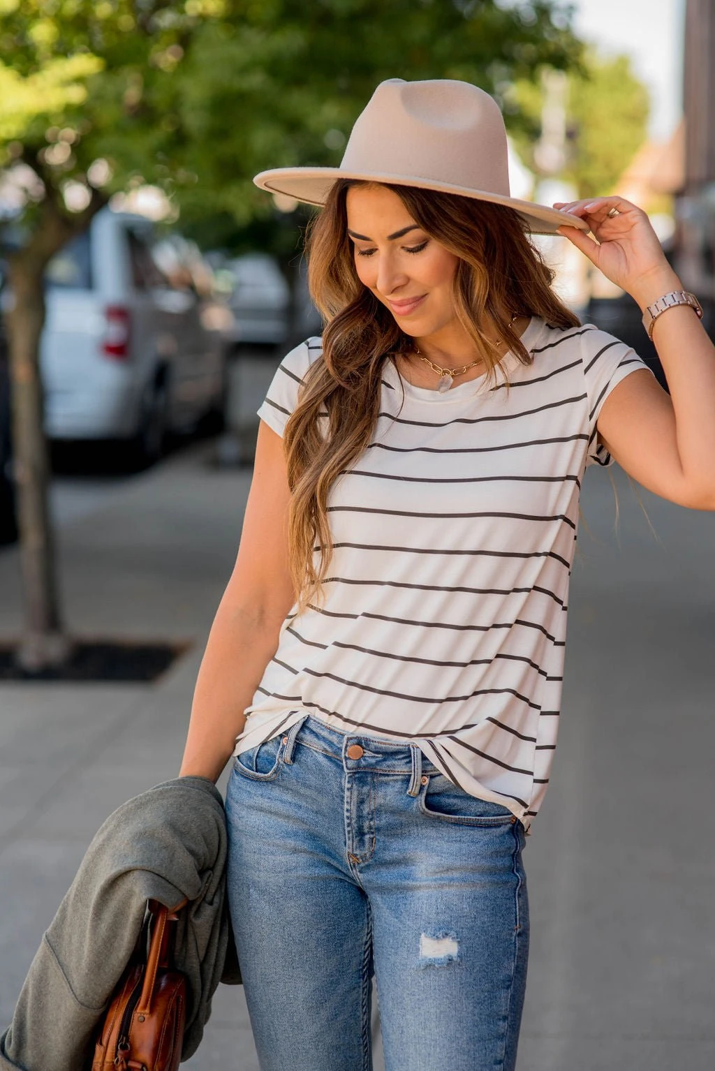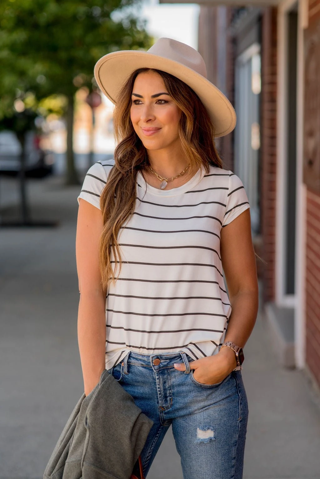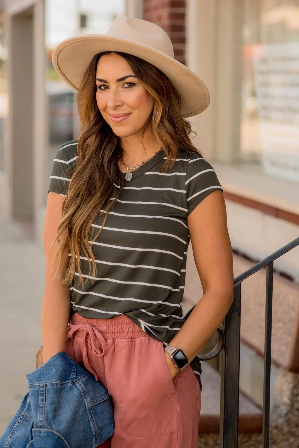 This basic tee is sure to be a staple in your closet! Soft, stretchy and pairs well with anything!