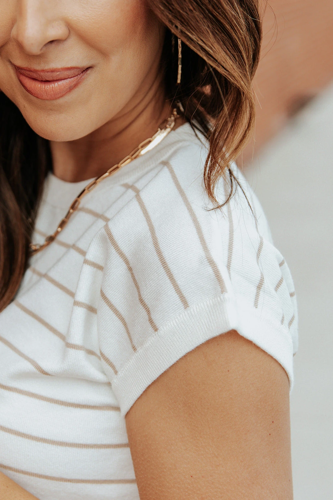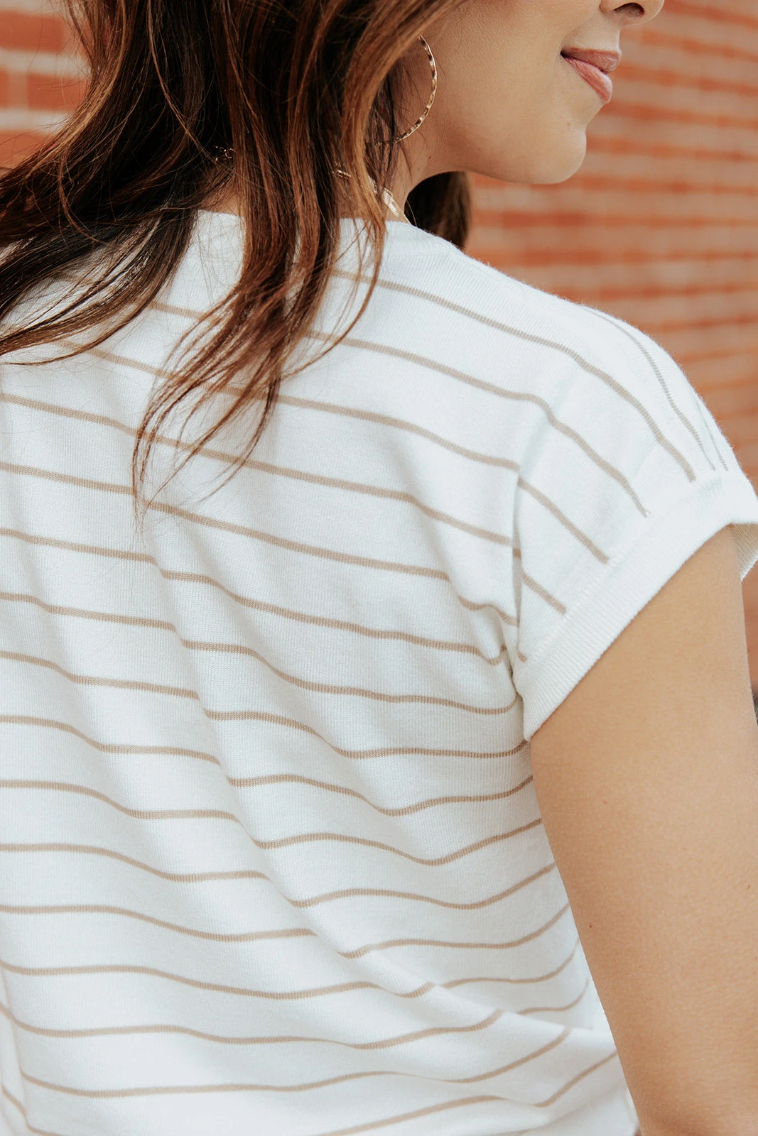 A simple dolman-style sleeve tee with classic stripes to give it a chic vibe! The knit look can be either dressed up or down to match your style! We love that this can be worn with shorts for the warmer months or denim, joggers, or our Betsey’s Jeggings for the cooler ones. Chilly? Add a blazer, cardigan, or jacket with ease! Simply add your favorite accessories to elevate this piece.