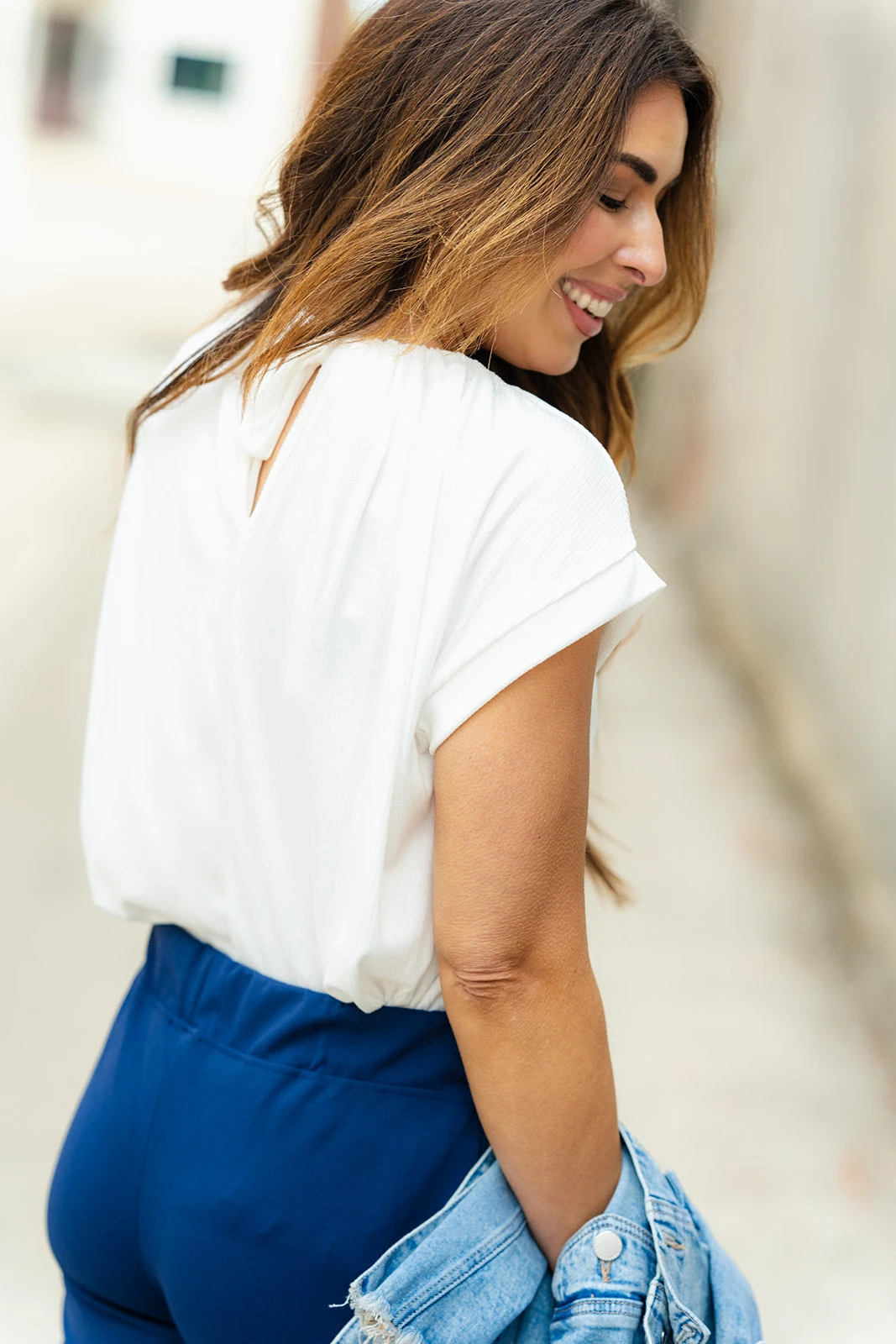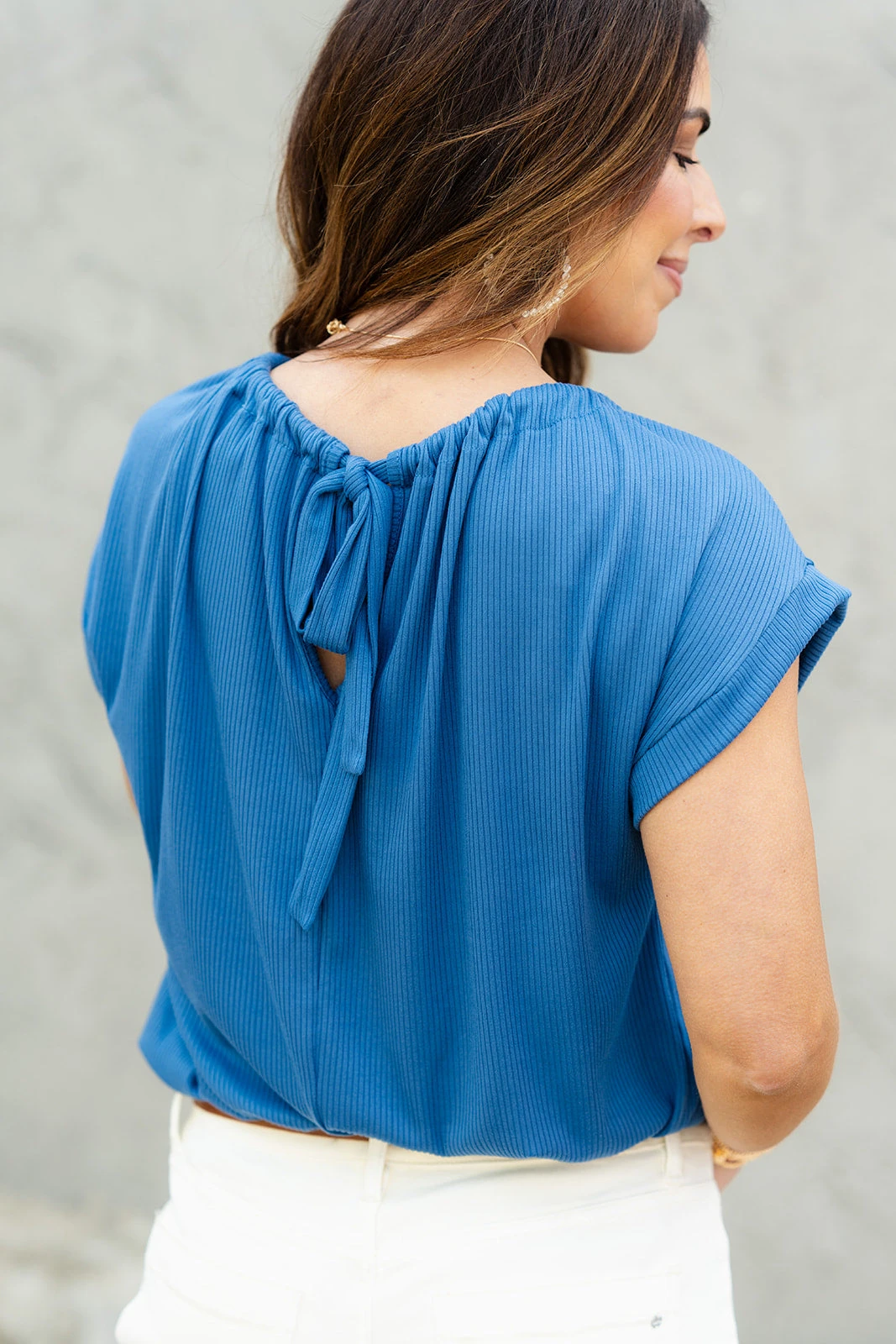 A ribbed tee with a twist! The cinched neckline ties in the back giving it a fun and flirty vibe! This pairs perfectly with shorts or a skirt in the warmer months and can be layered in the cooler ones! The simplicity of this tee allows you to dress it up or down with ease for everyday wear!