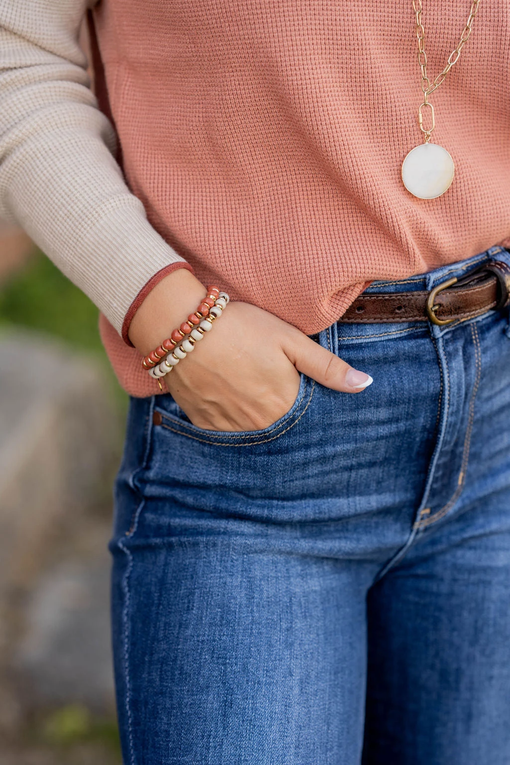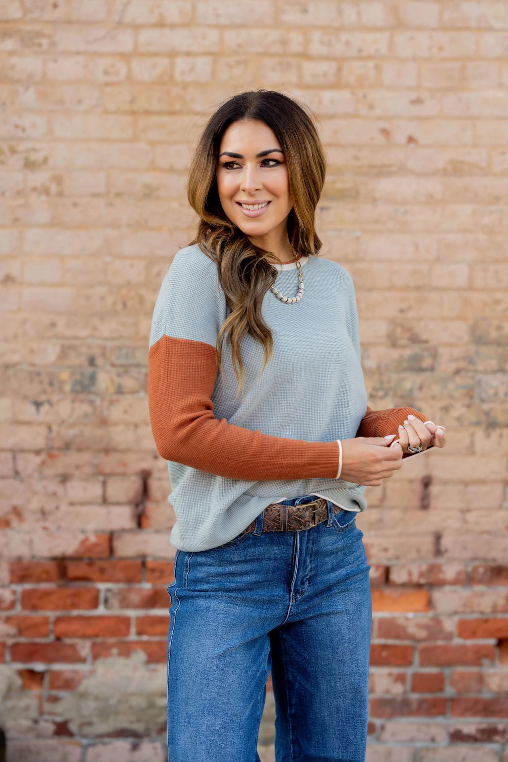The three different colors on the thermal material gives this such a chic look! This sweater is lightweight enough to transition through seasons but can be layered with a vest or jacket with ease! Add your favorite denim or our Betsey’s Jeggings and a statement necklace for a complete Betsey’s look or joggers for a more casual on-the-go feel! No matter how you chose to style this, we just know you will be getting compliments all day long!Â