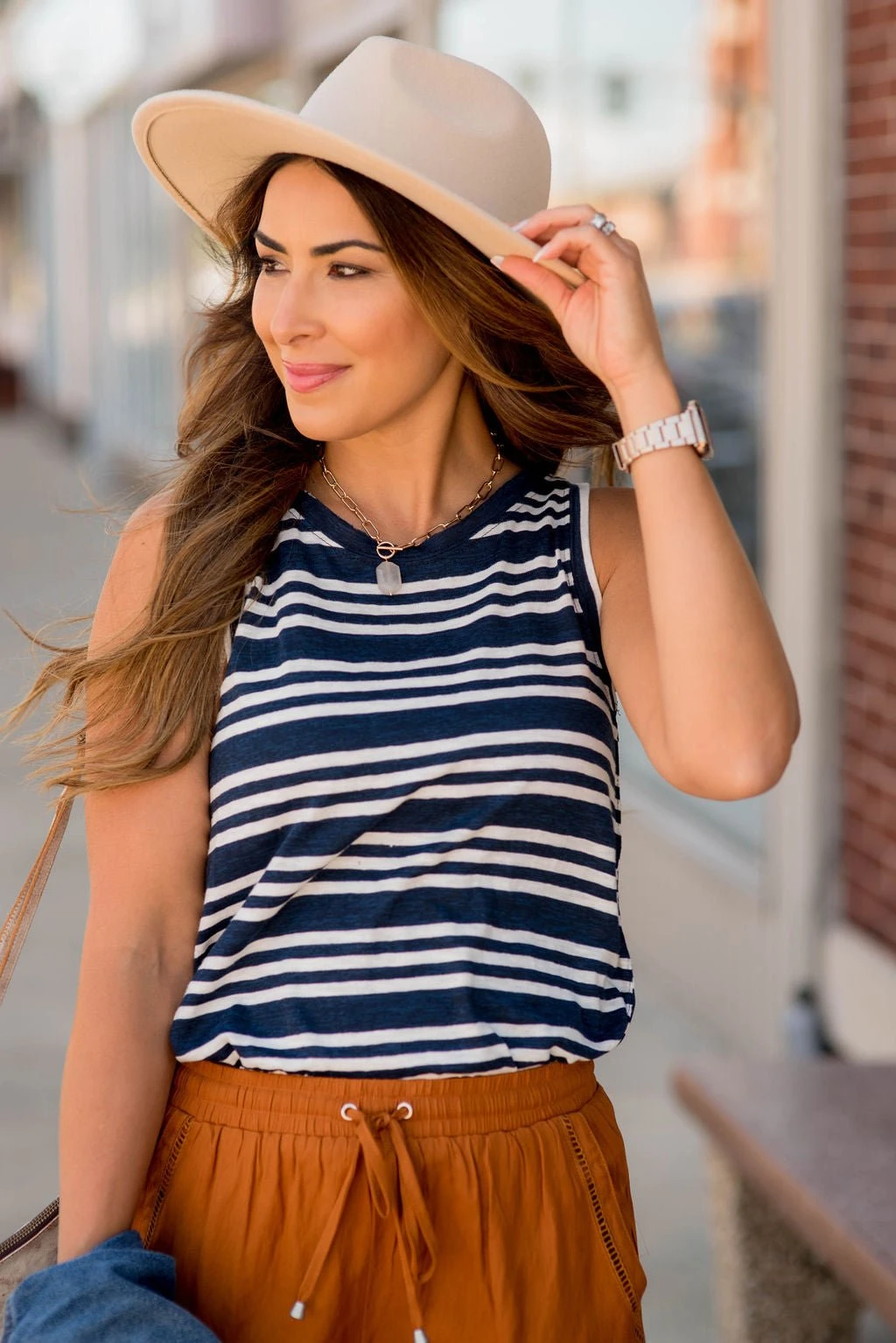 Striped tanks are a staple for every girls wardrobe! They are so easy to style and can be dressed up or down with accessories and layering pieces