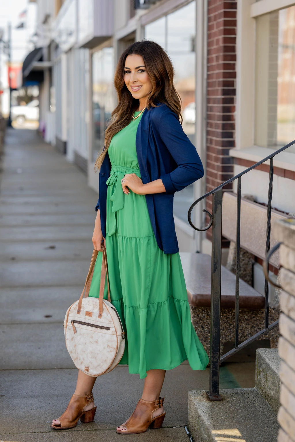 This is the perfect dress for any event or occasion and can be worn alone with sandals or wedges in the warmer months or paired with a cardigan, blazer, or jacket and booties in the cooler ones! You are sure to turn heads wherever you go! The flowy style with the drawstring tie waist makes this ideal for all body shapes and sizes and can be dressed up or down with ease!