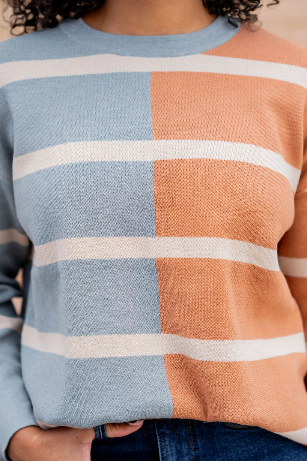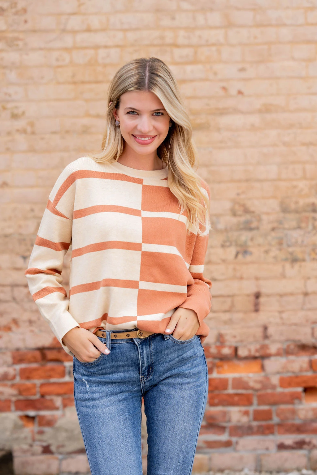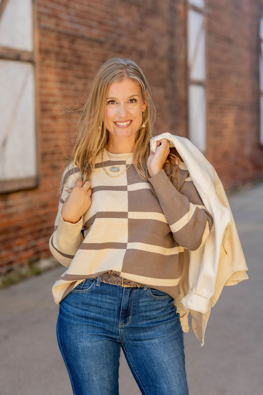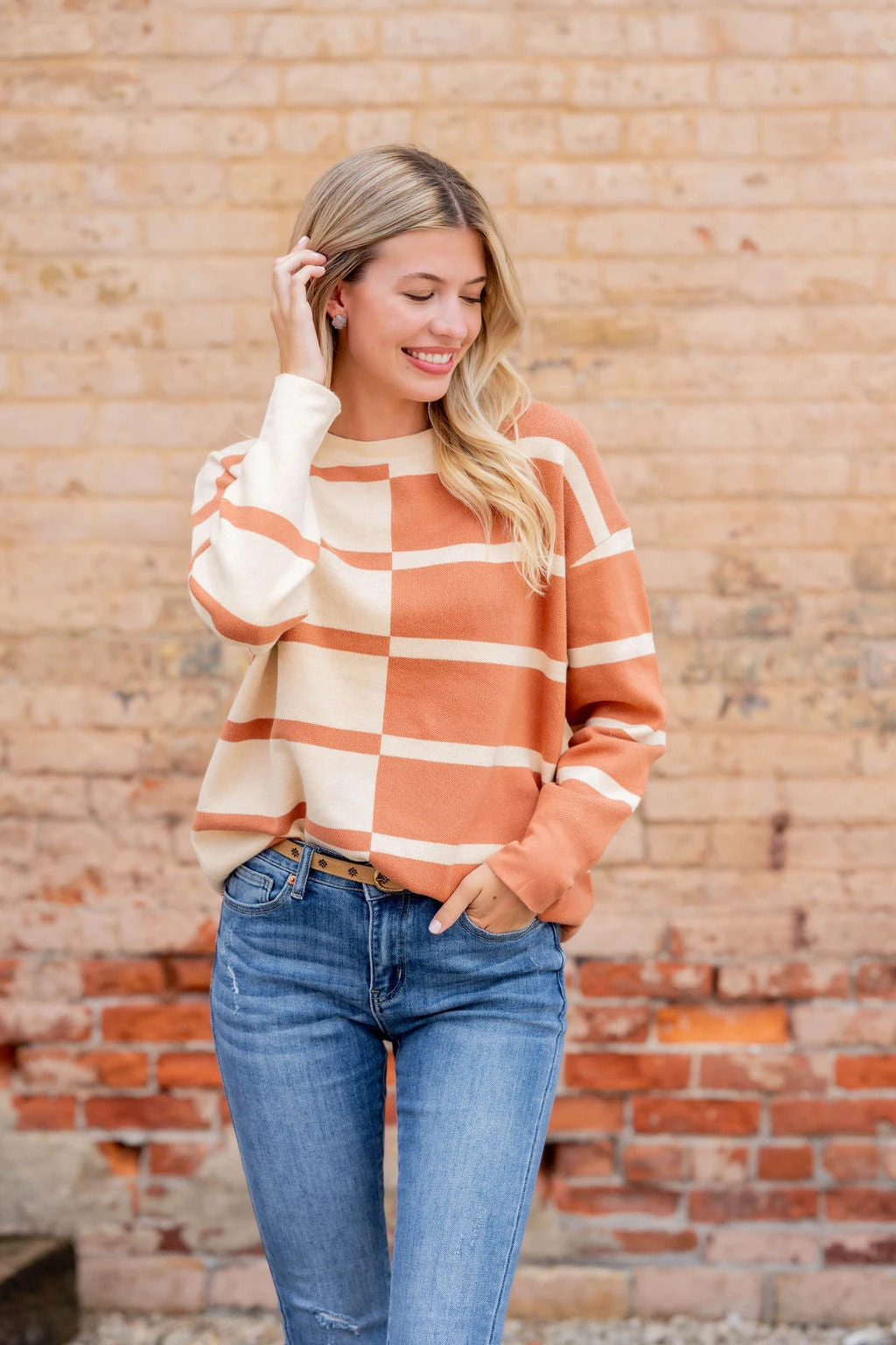 Sweater weather is upon us and we’re in love with this one! The two tone look and the stripes are so simple yet so chic! Pair this sweater with jeans, accessorize and add your favorite pair of shoes for a quick, stylish look! Chilly? Add a vest or jacket with ease!!