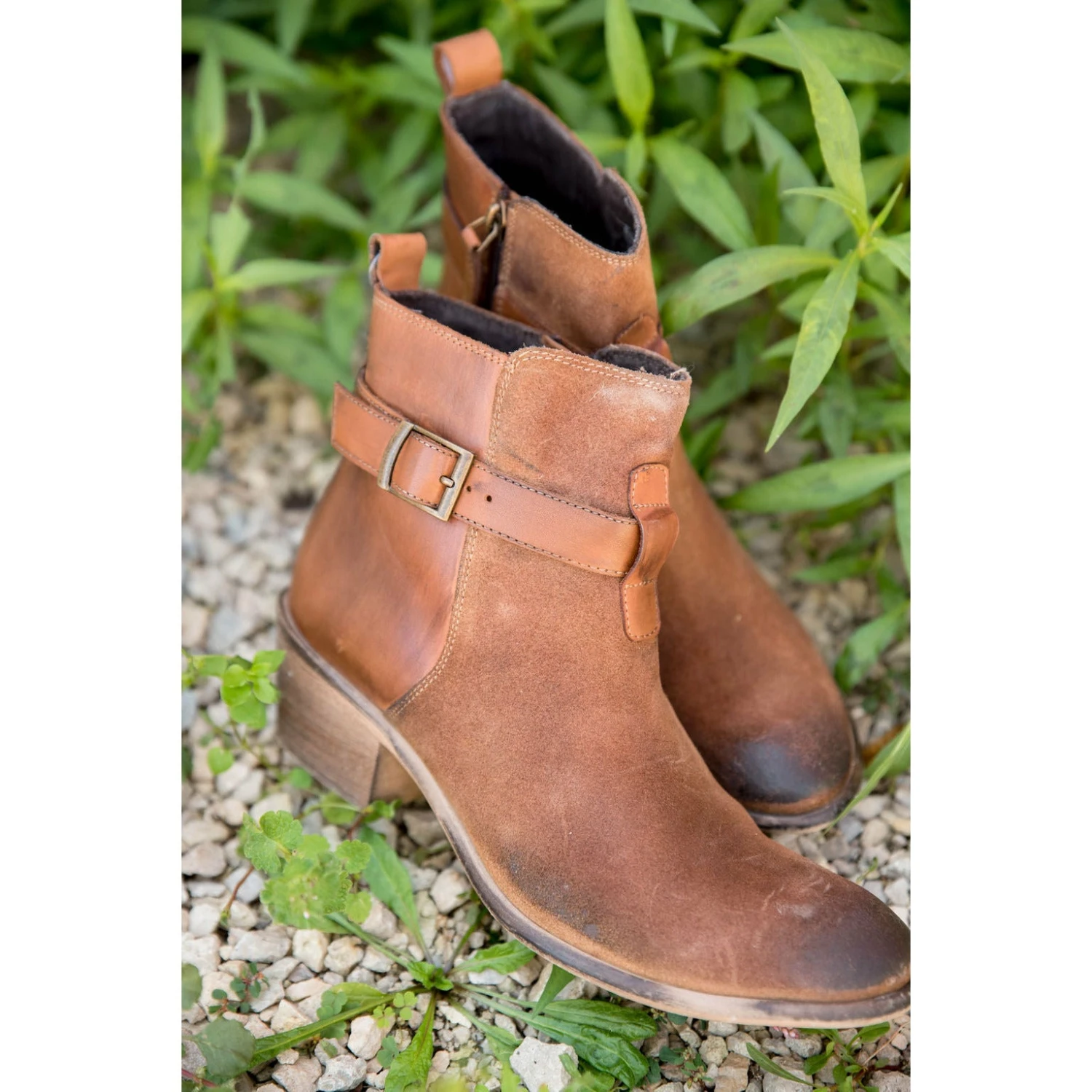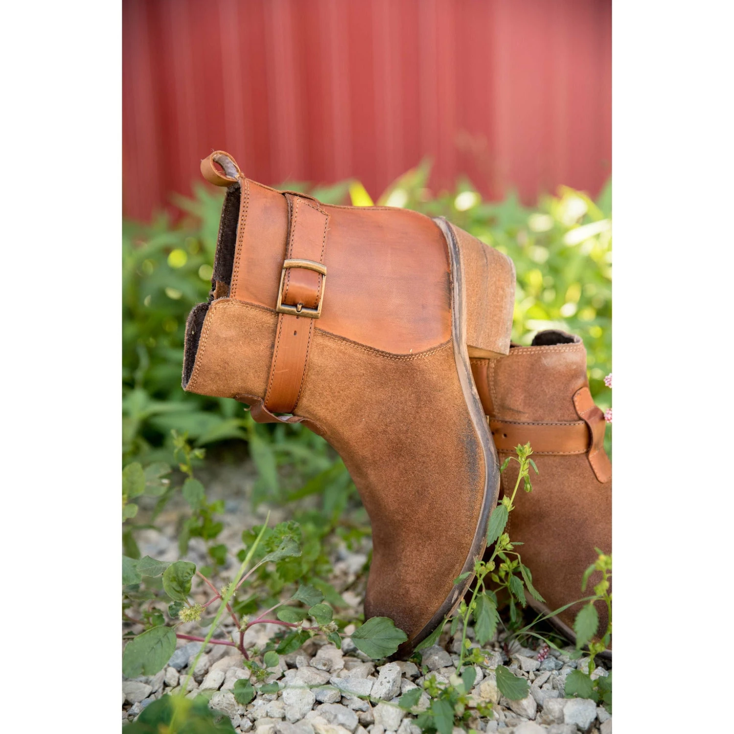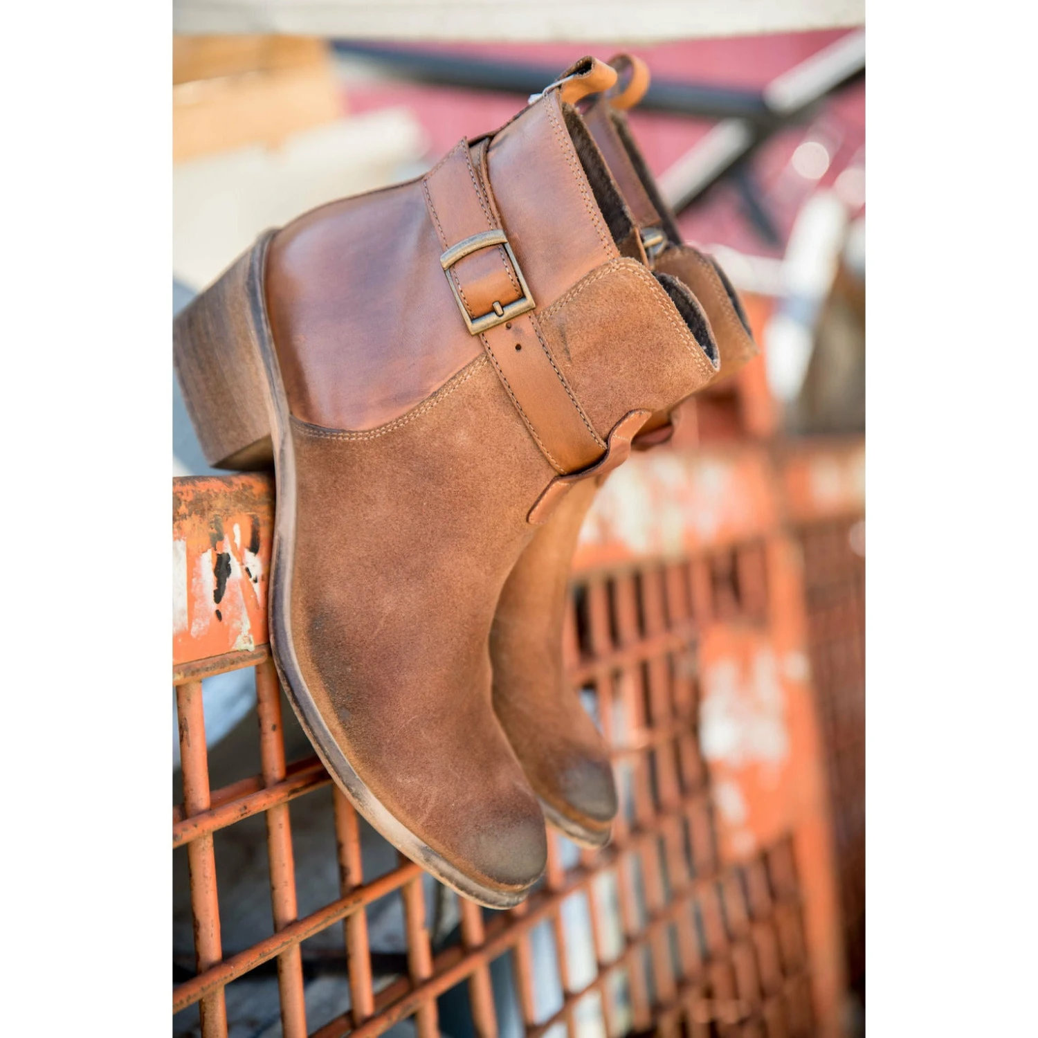 Be cool and confident in UMA. Suede and smooth leather blend perfectly in this short-heeled boot. This boot features a side zipper, ankle strap and back pull tab for easy on and off. Make a statement in Uma.
