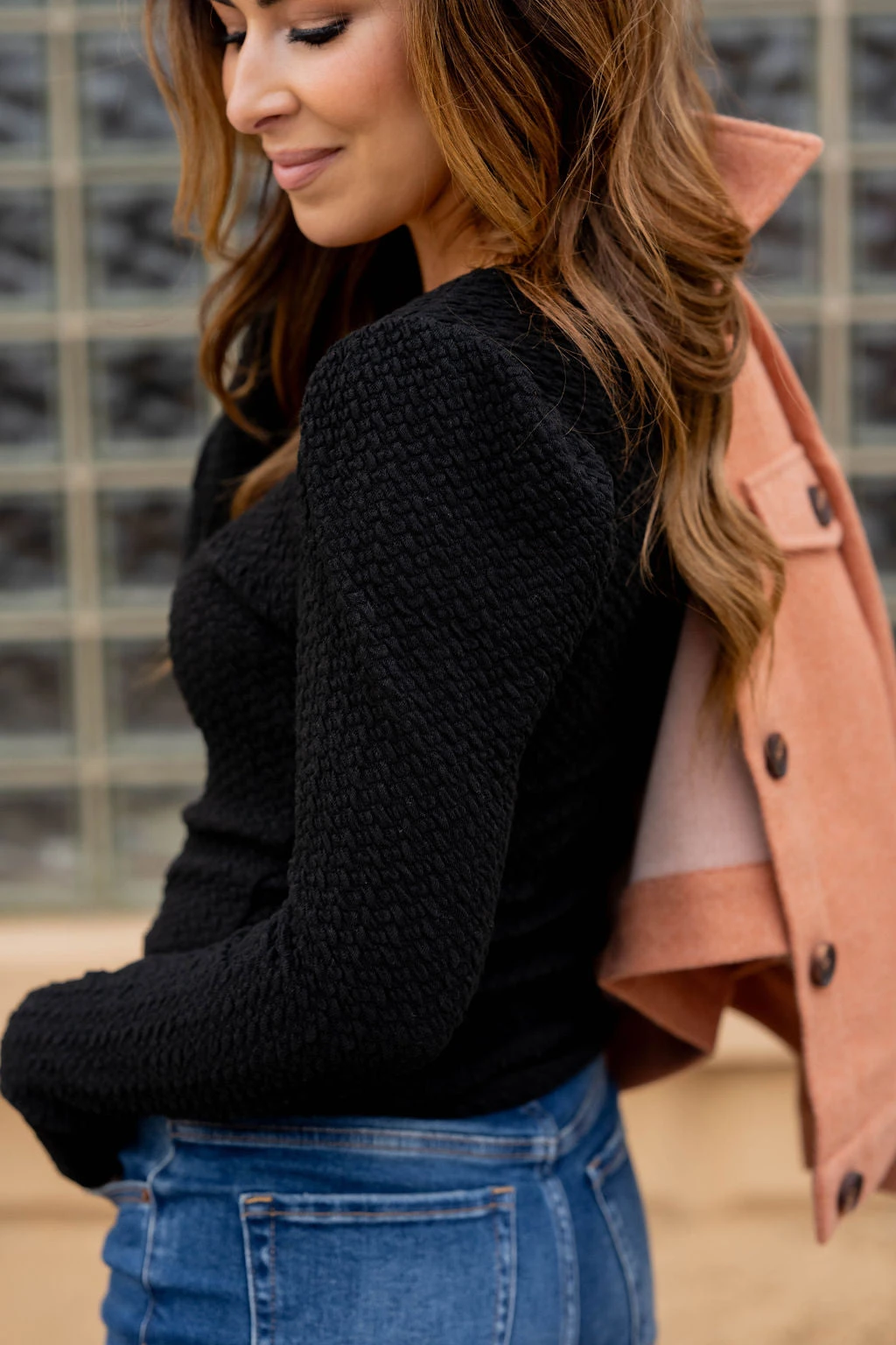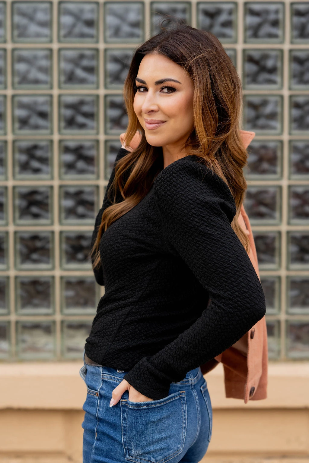 This tee is unlike all the rest! The unique texture and gathered shoulder detailing give this so much character. Pair with a skirt, your favorite denim, joggers, or our Betsey’s Jeggings! Add your favorite accessories to elevate the look and make it match your style! Chilly? Add a vest or shacket with ease.