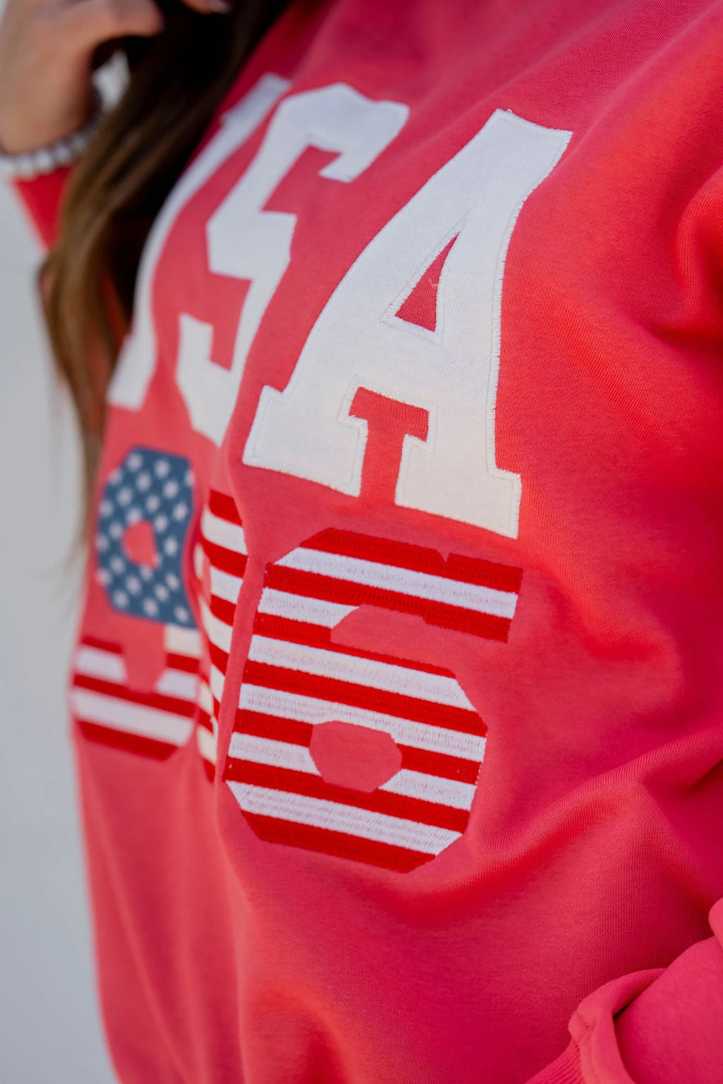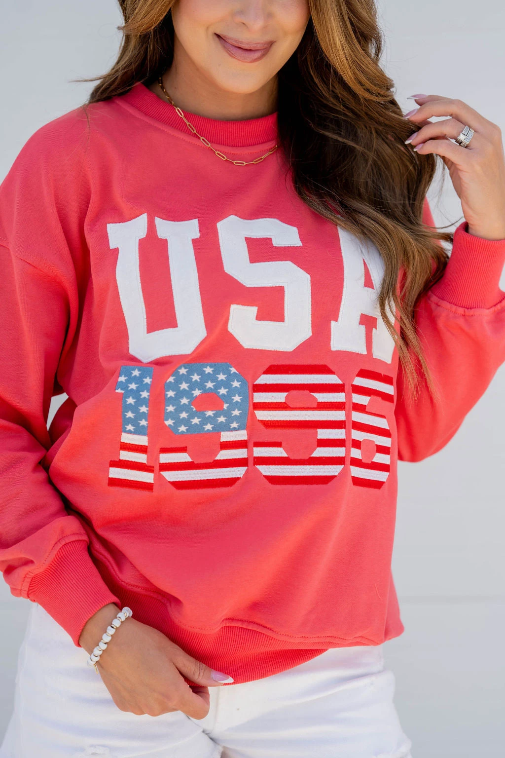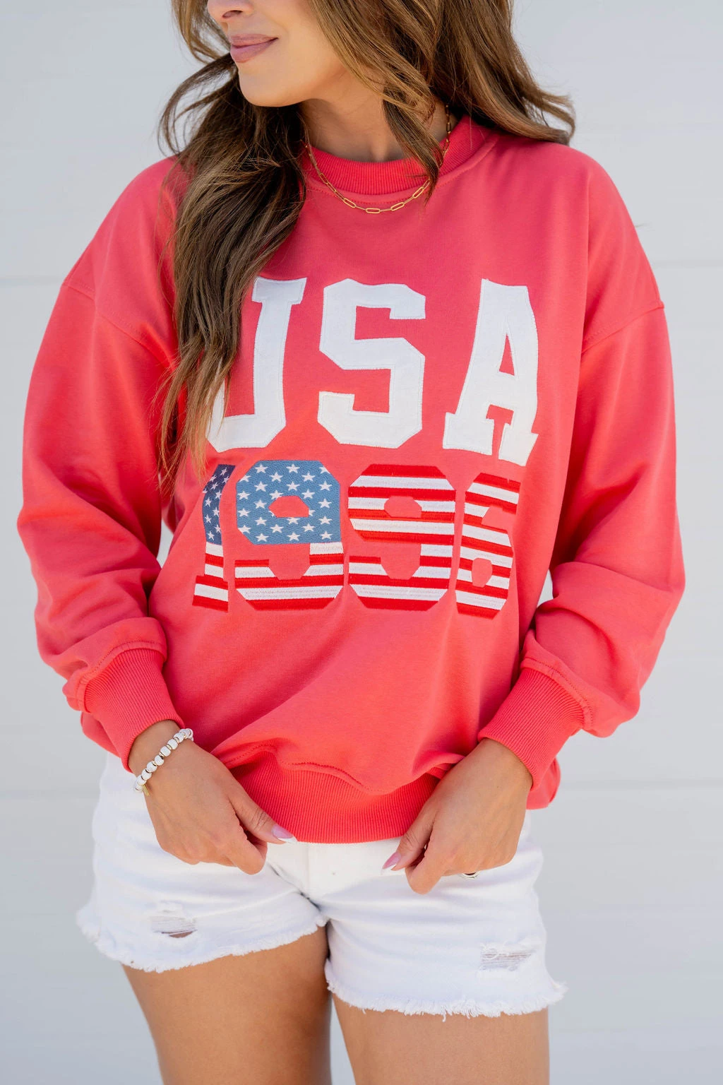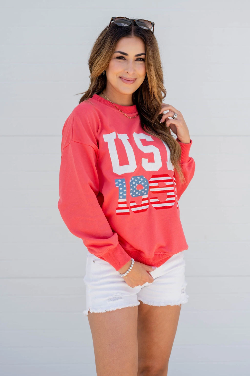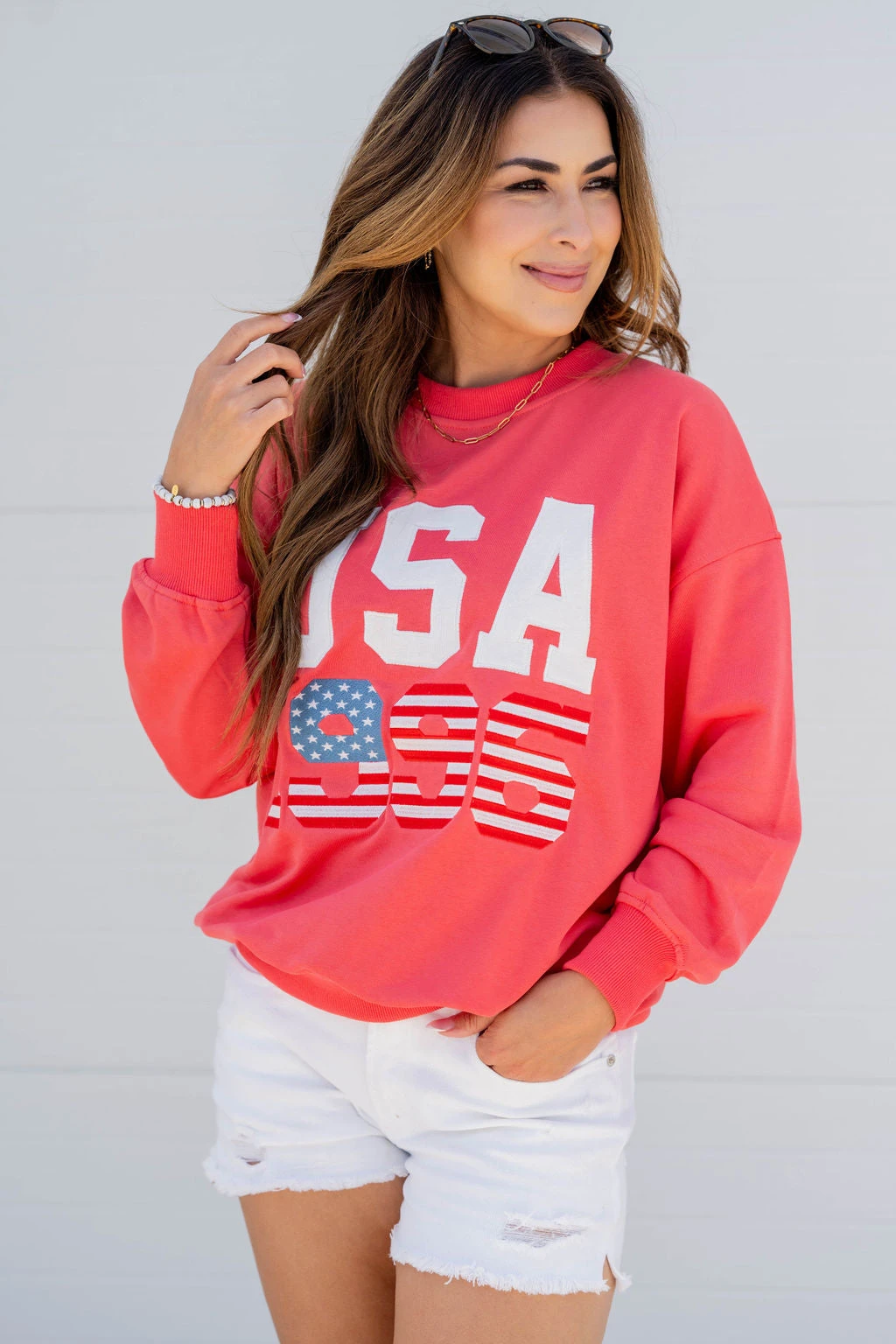 Feel patriotic in this one-of-a-kind sweatshirt! This super soft and cozy graphic crewneck is sure to become a new fan favorite! Pair with shorts to transition you into warmer months or with your favorite denim, joggers, or leggings for the cooler ones! Add a vest or shacket for an extra layer of warmth and style!