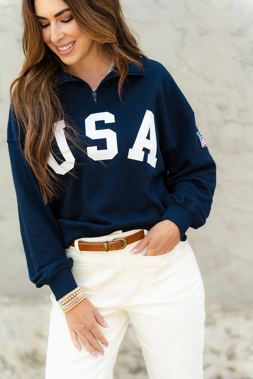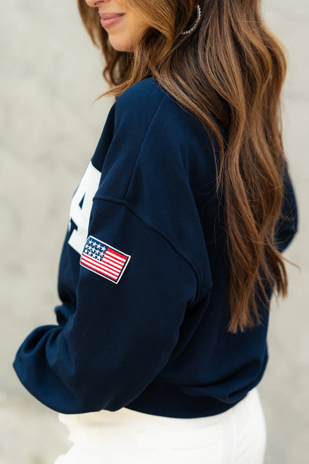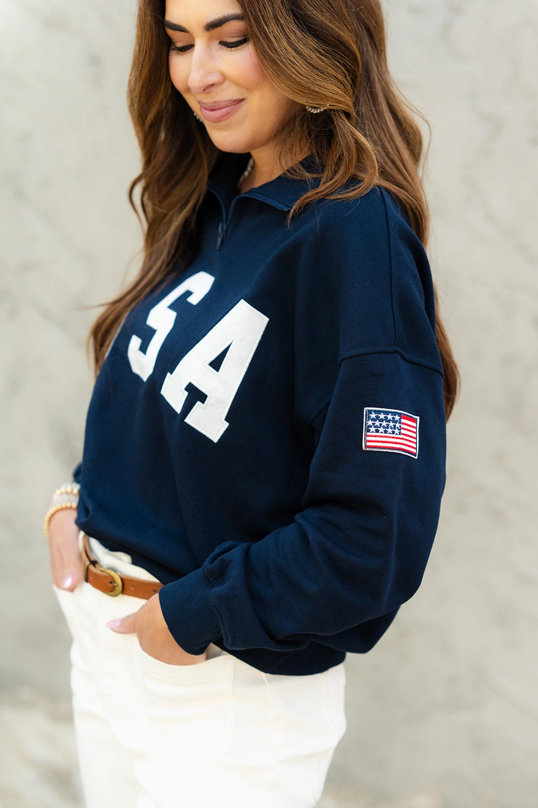 Feel patriotic in this fun and comfy pullover! Soft and lightweight, this can be worn with shorts in the warmer months or leggings, denim, or joggers in the cooler ones! We love that this can take you from the gym to busy days on-the-go!