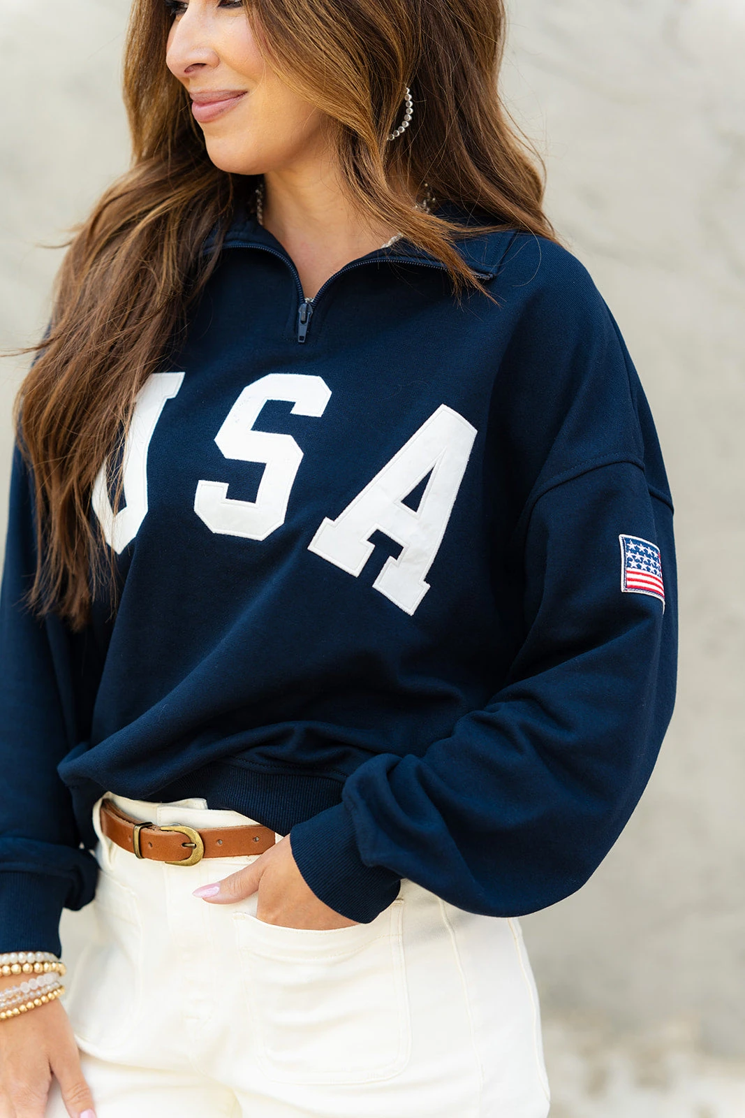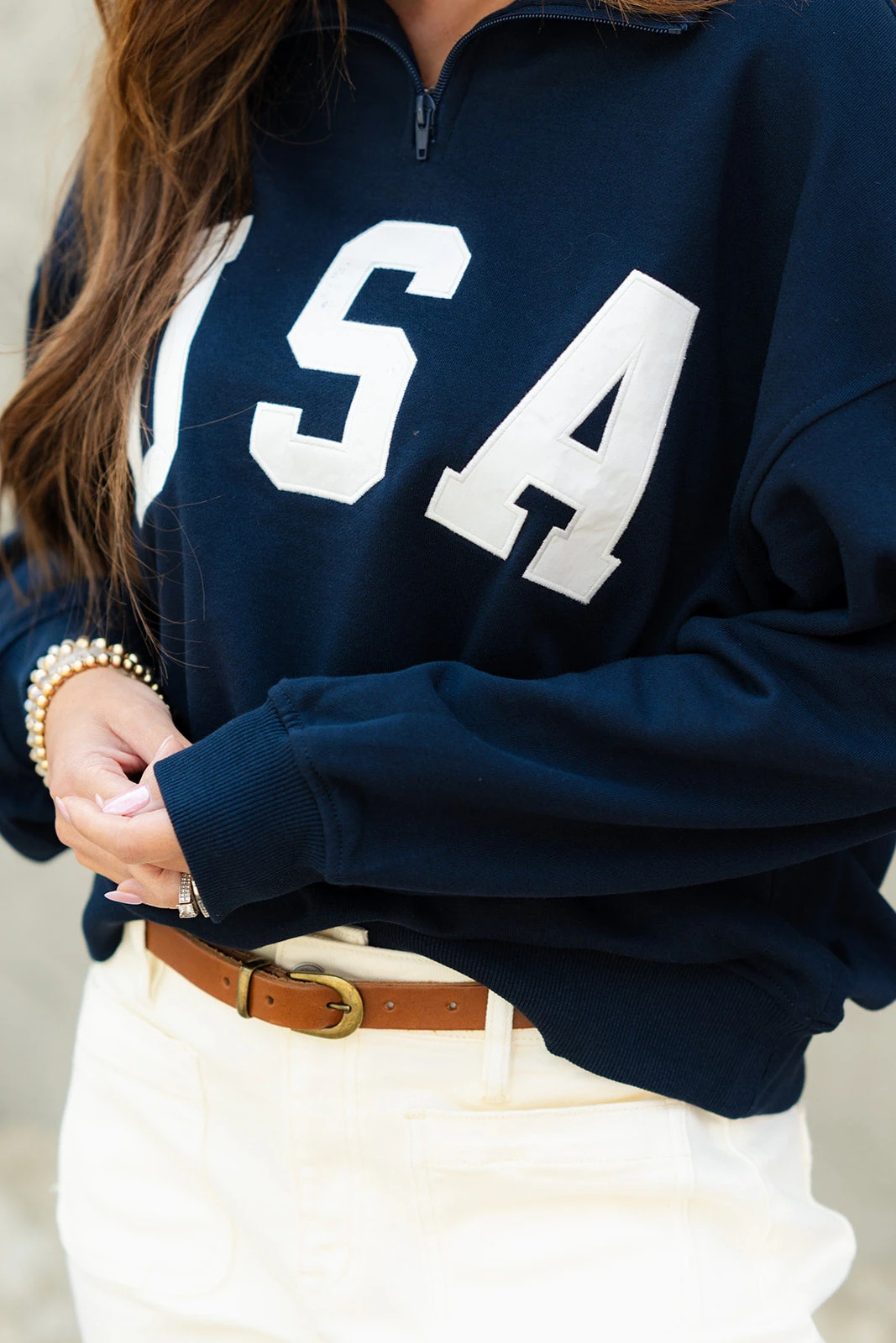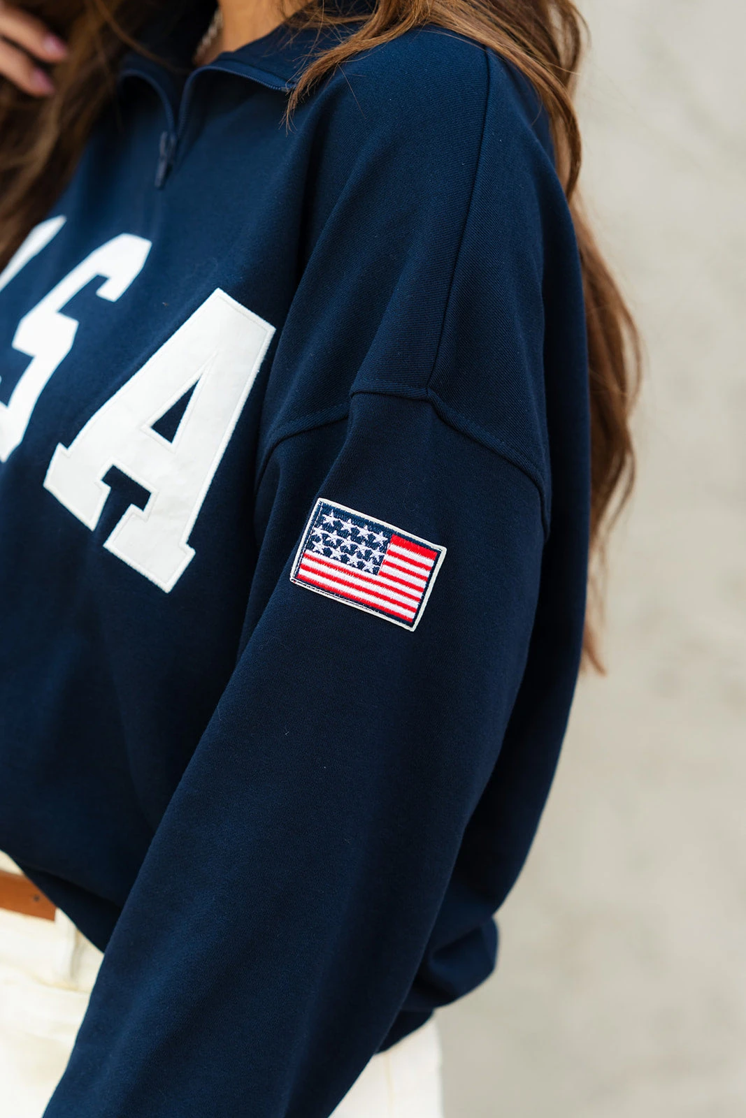 Feel patriotic in this fun and comfy pullover! Soft and lightweight, this can be worn with shorts in the warmer months or leggings, denim, or joggers in the cooler ones! We love that this can take you from the gym to busy days on-the-go!