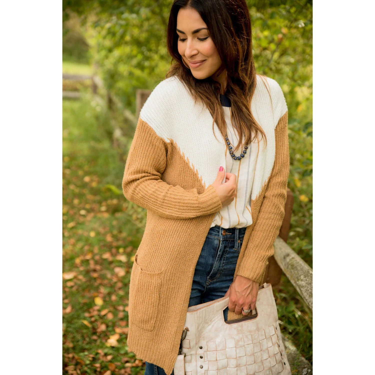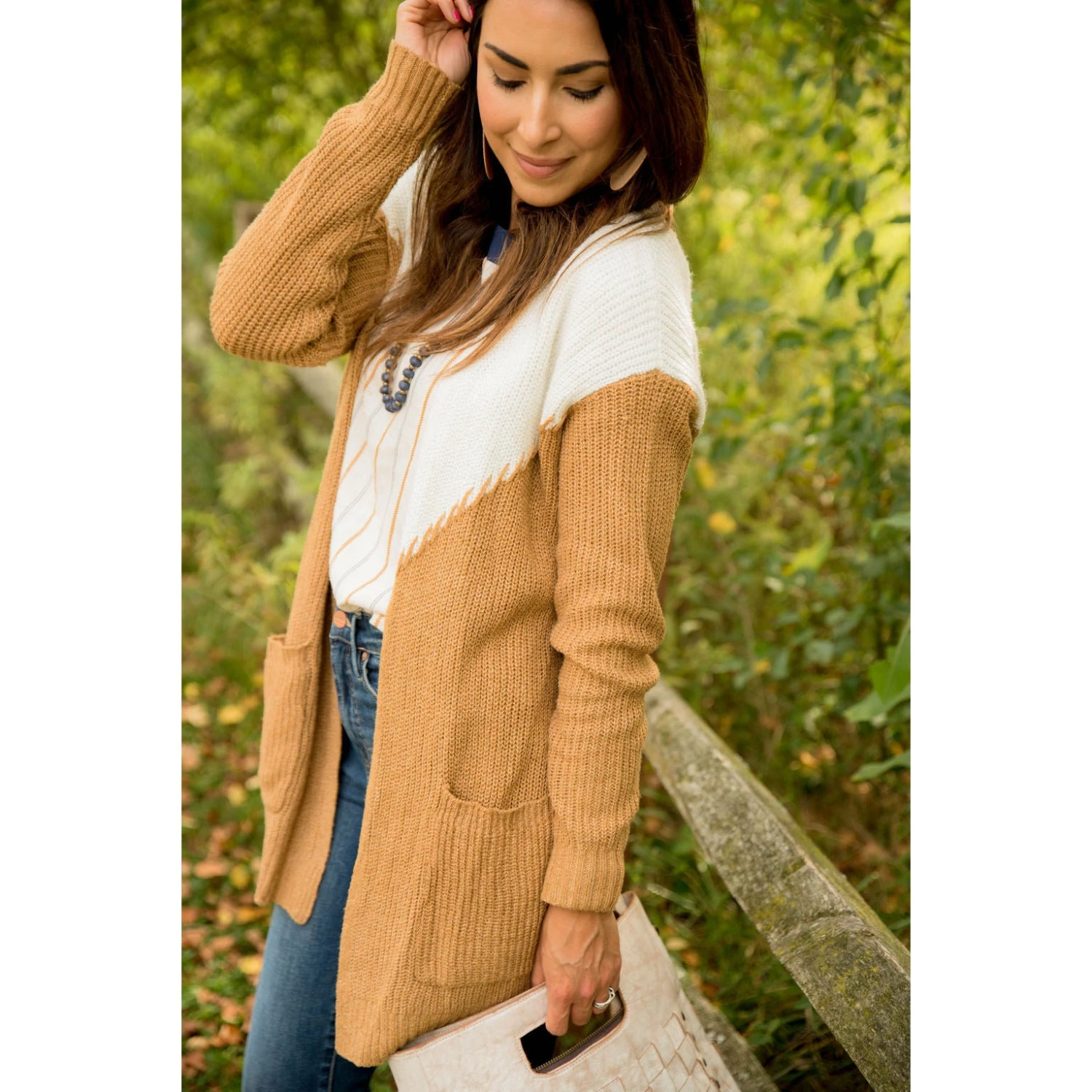 This cardigan is made with a thick material and a simple design. Cozy, trendy, great!