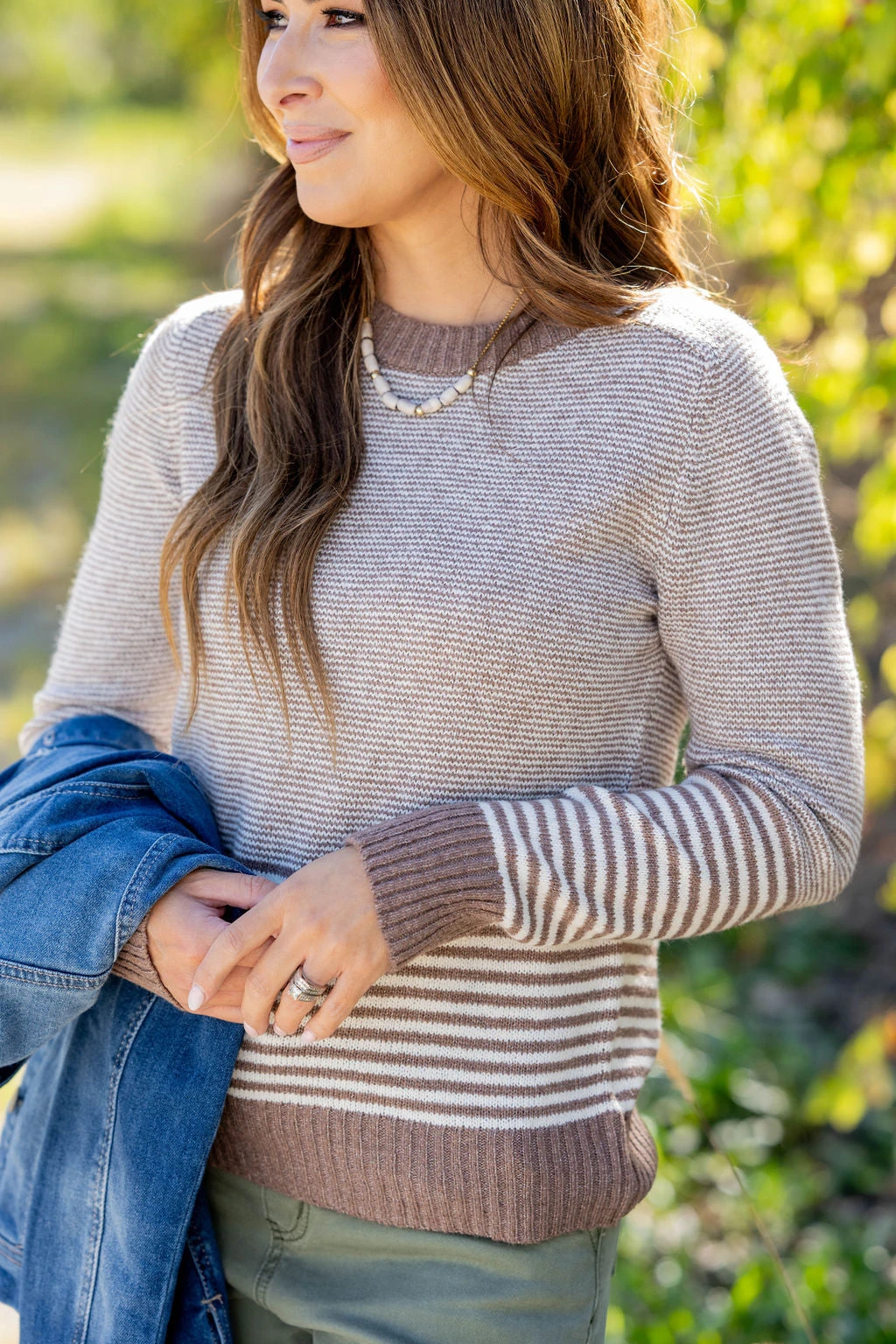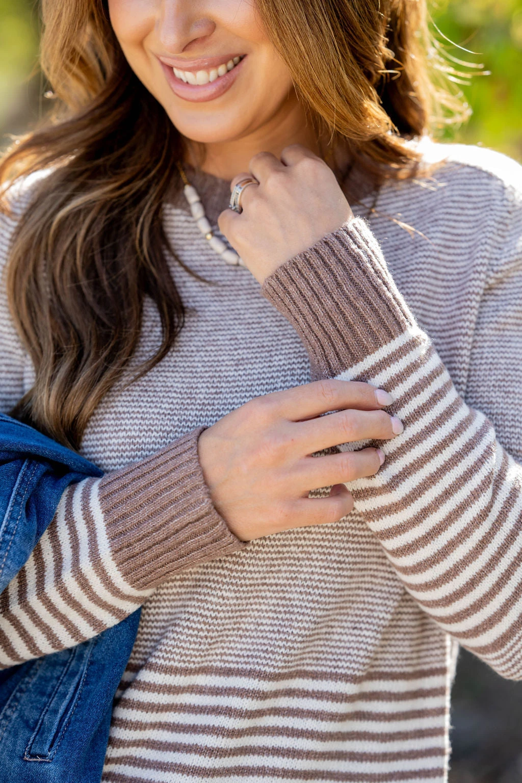 Sweater weather is upon us and we are ready! The textured stripes and the solid trim accent sets this apart from the rest! We love that this can be paired with your favorite denim, leggings, joggers, or a pair of our Betsey’s Jeggings for a quick yet super cute look! Chilly? Add a vest or jacket with ease!