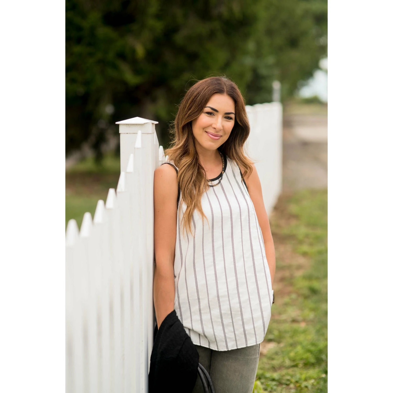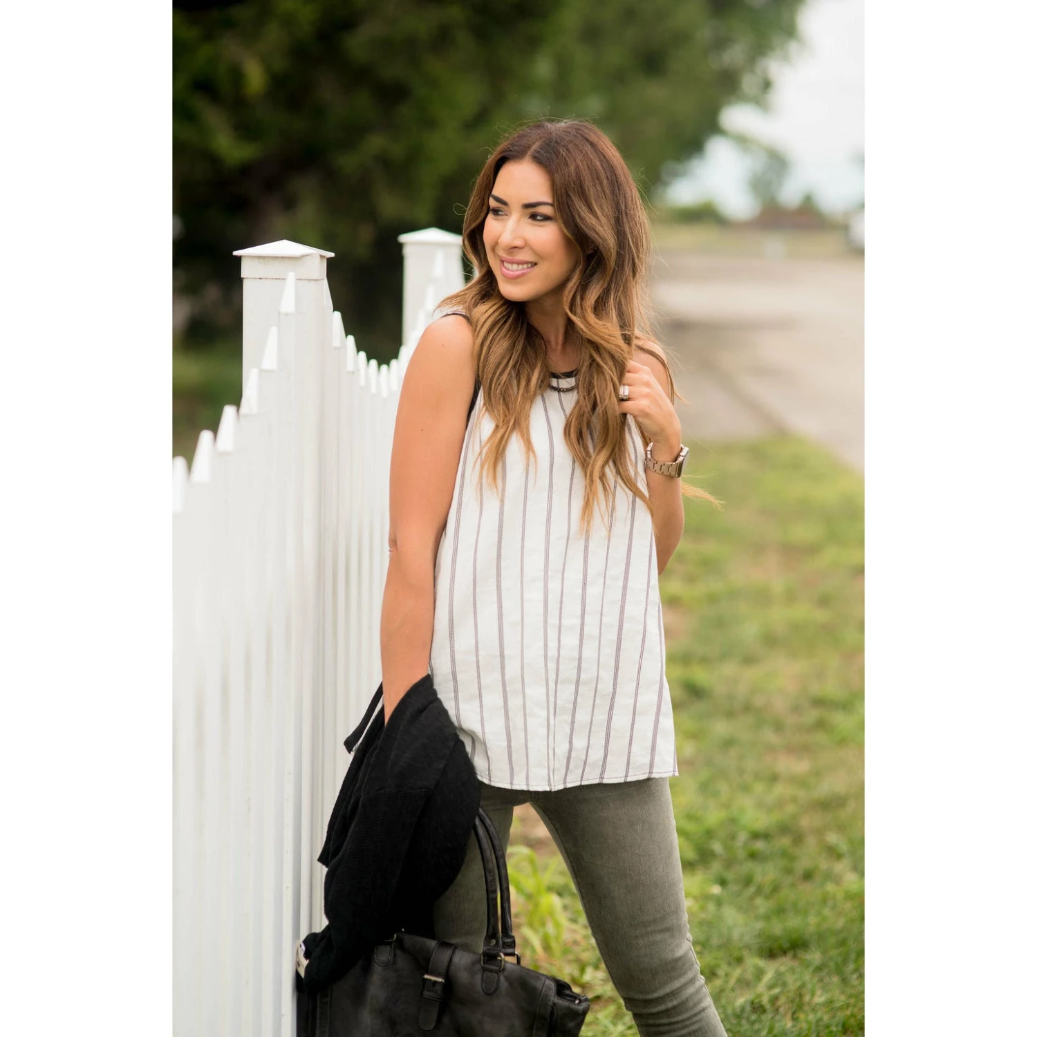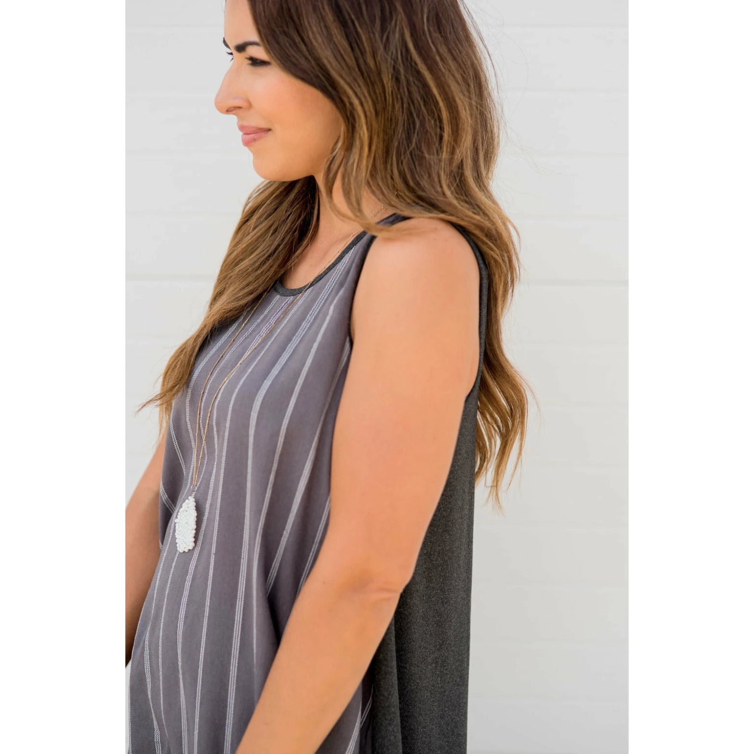 You can never have too many tanks! This tank is striped in the front and solid in the back! Layer it with sweaters or cardigans, and you will be set!