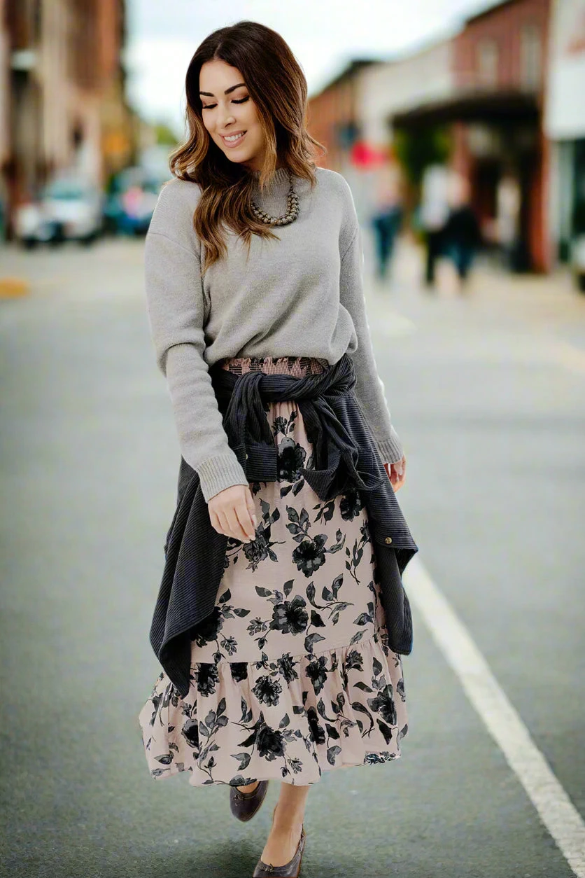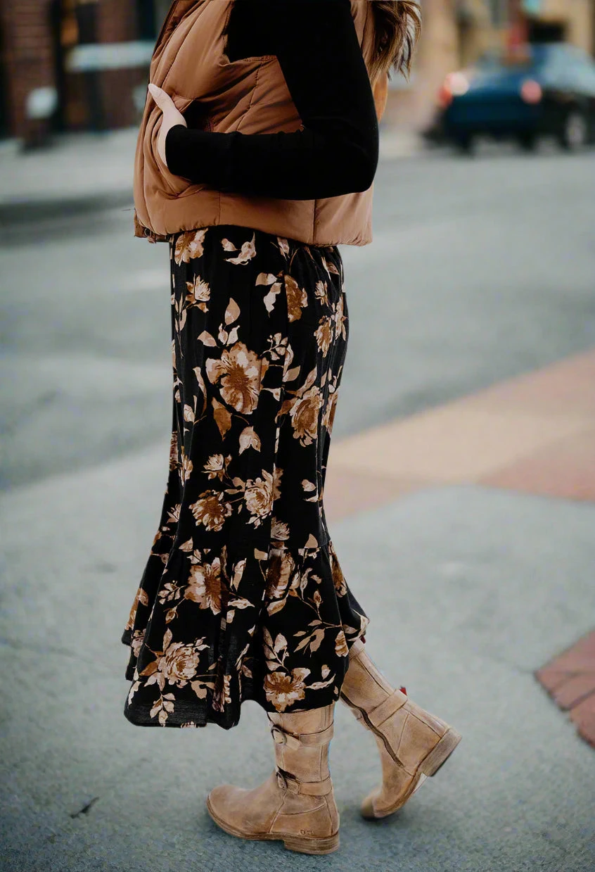 Be the first to review “Vintage Roses Ruffle Bottom Maxi Skirt” Cancel reply