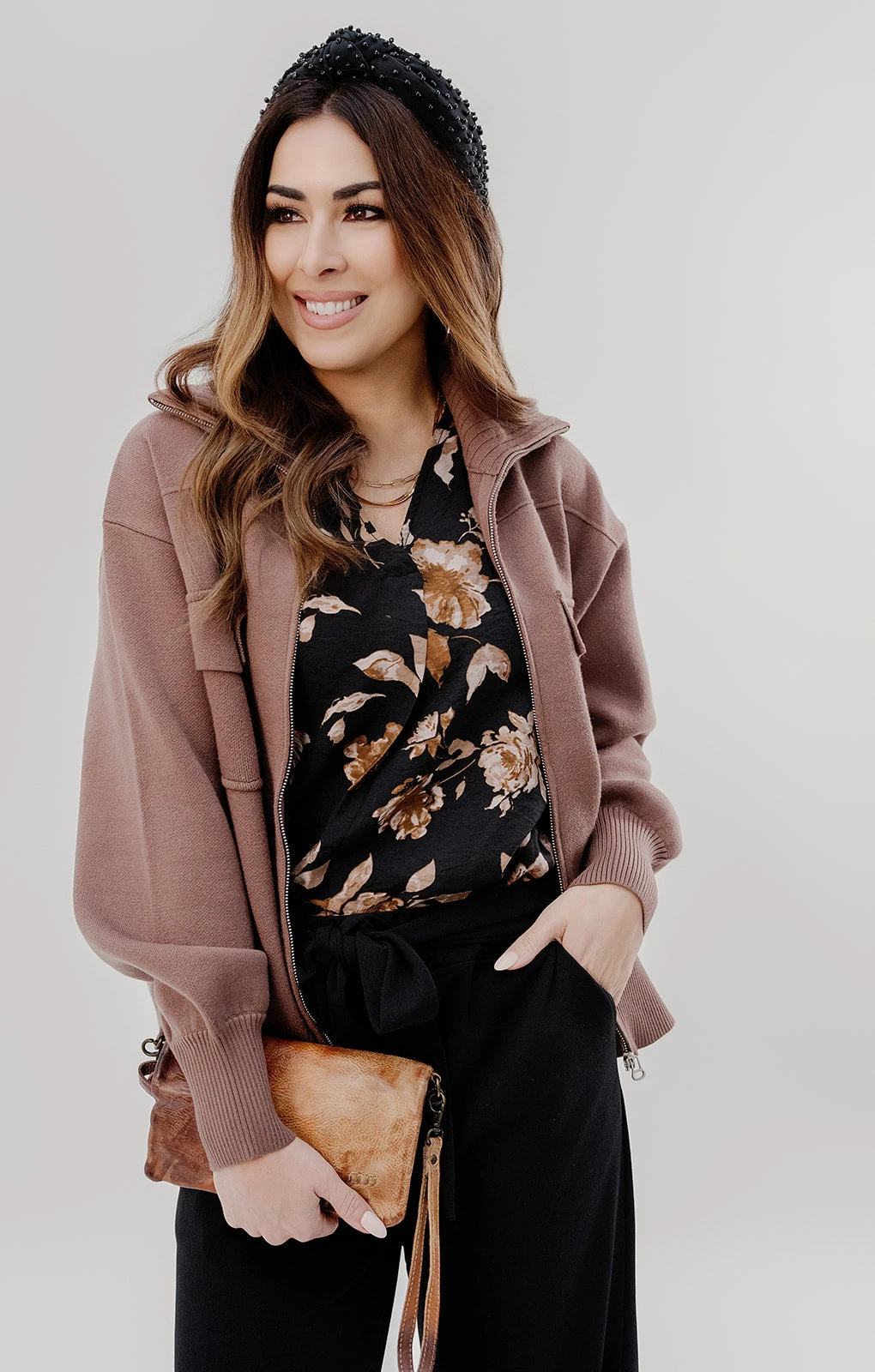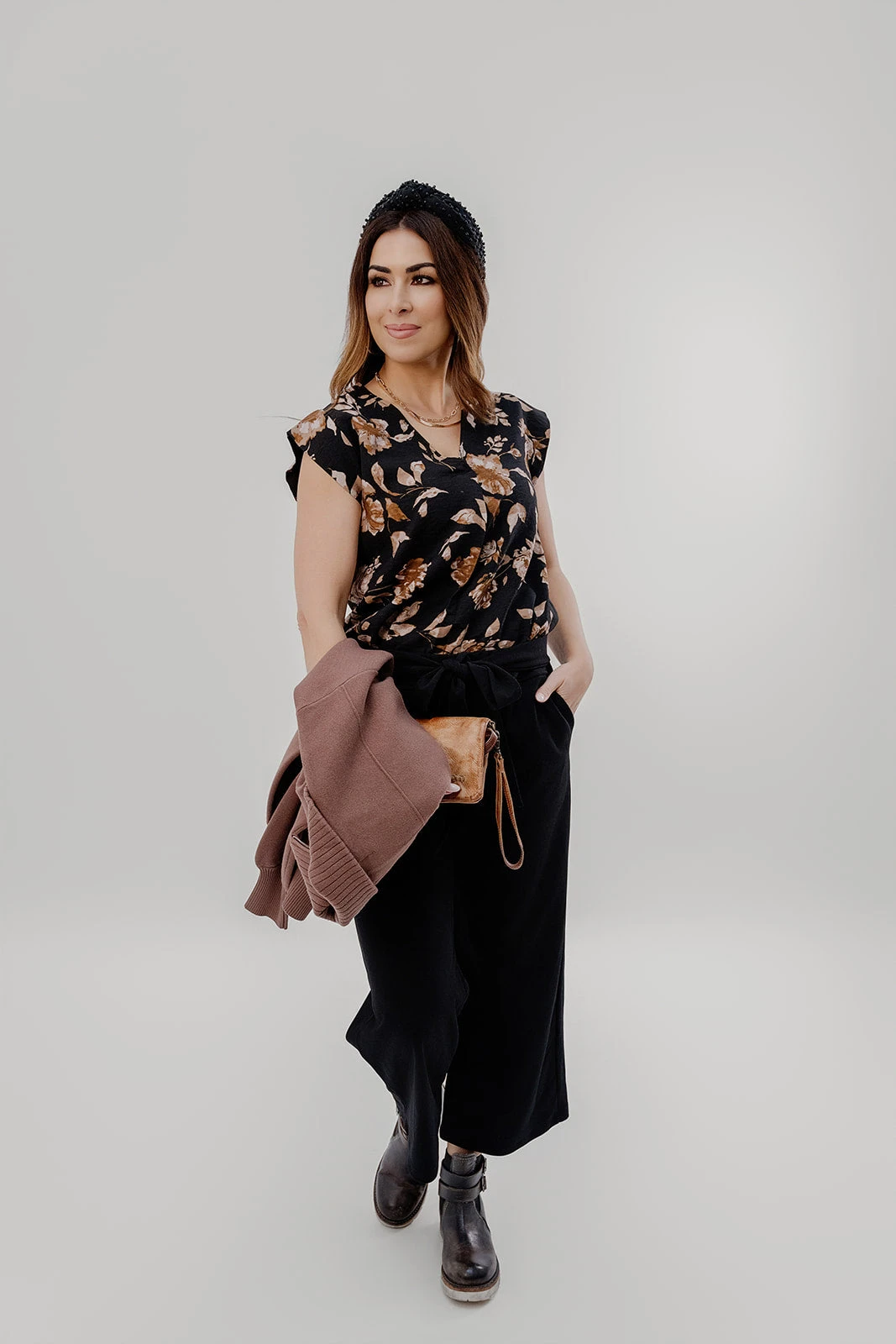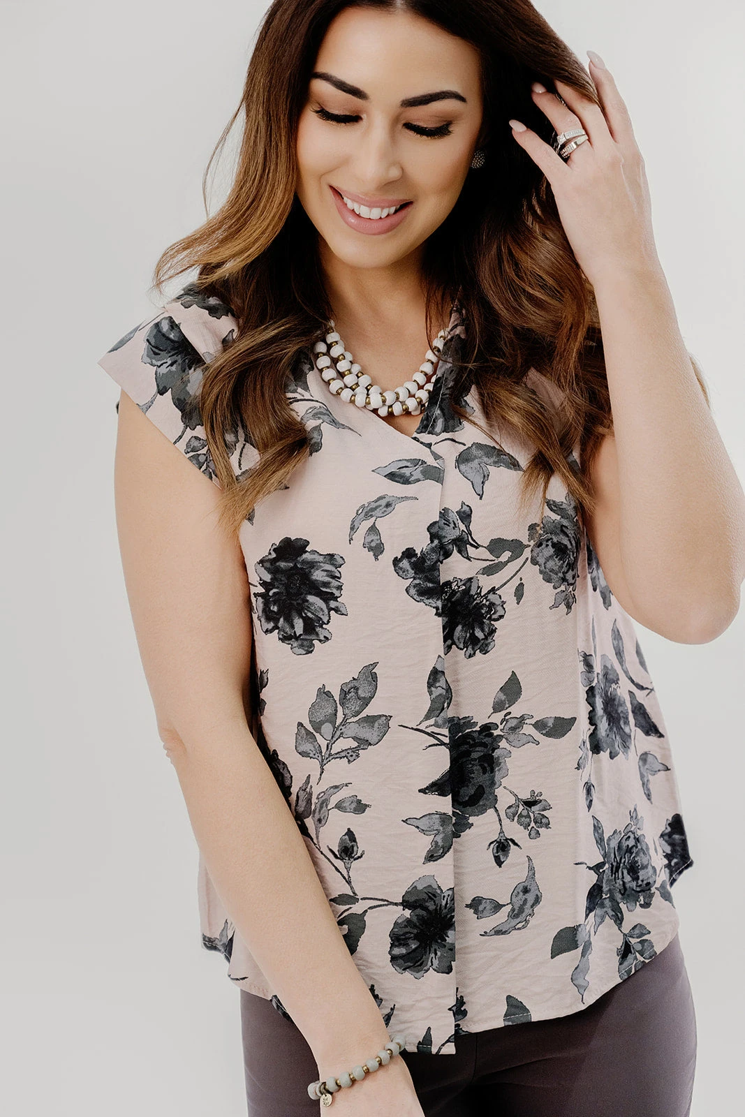 The stunning vintage floral print and v-neck cut on this blouse makes it unlike anything else! Tuck this into a high-waisted skirt or with some Betsey’s Jeggings for the office or the classroom or pair with denim, shorts, or joggers for a more casual feel! Don’t forget to add your favorite accessories for a complete Betsey’s look!