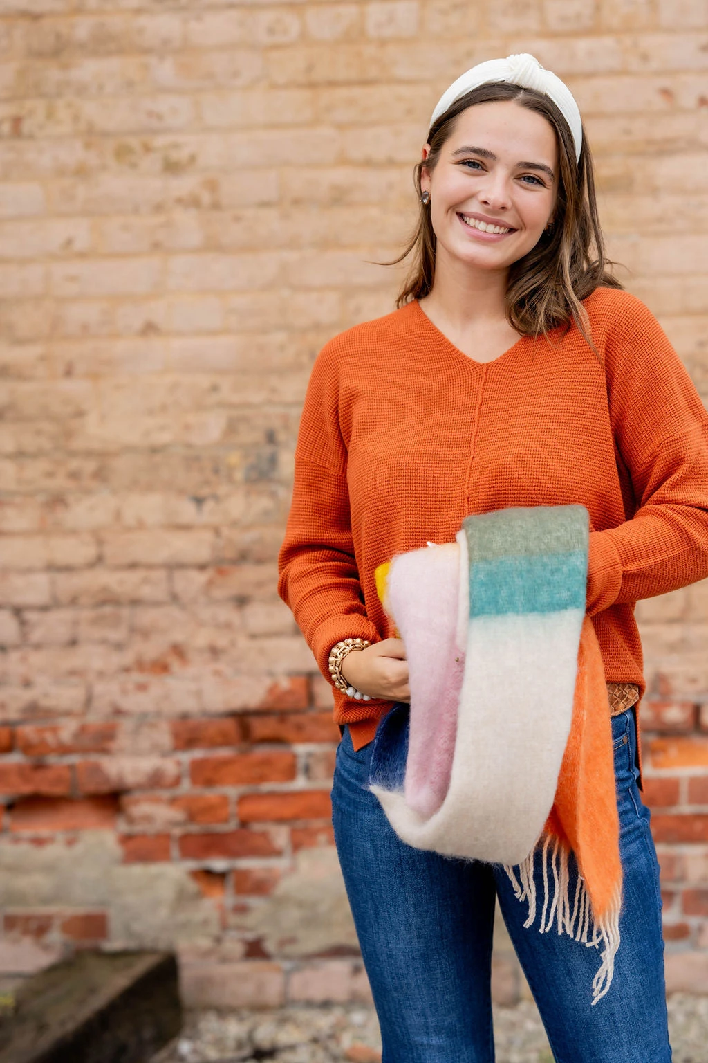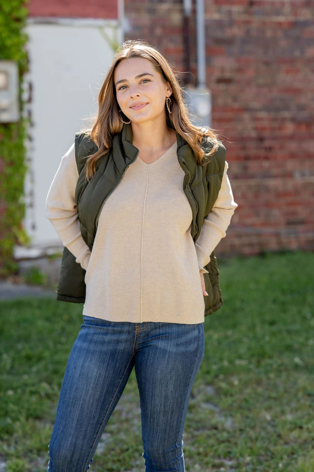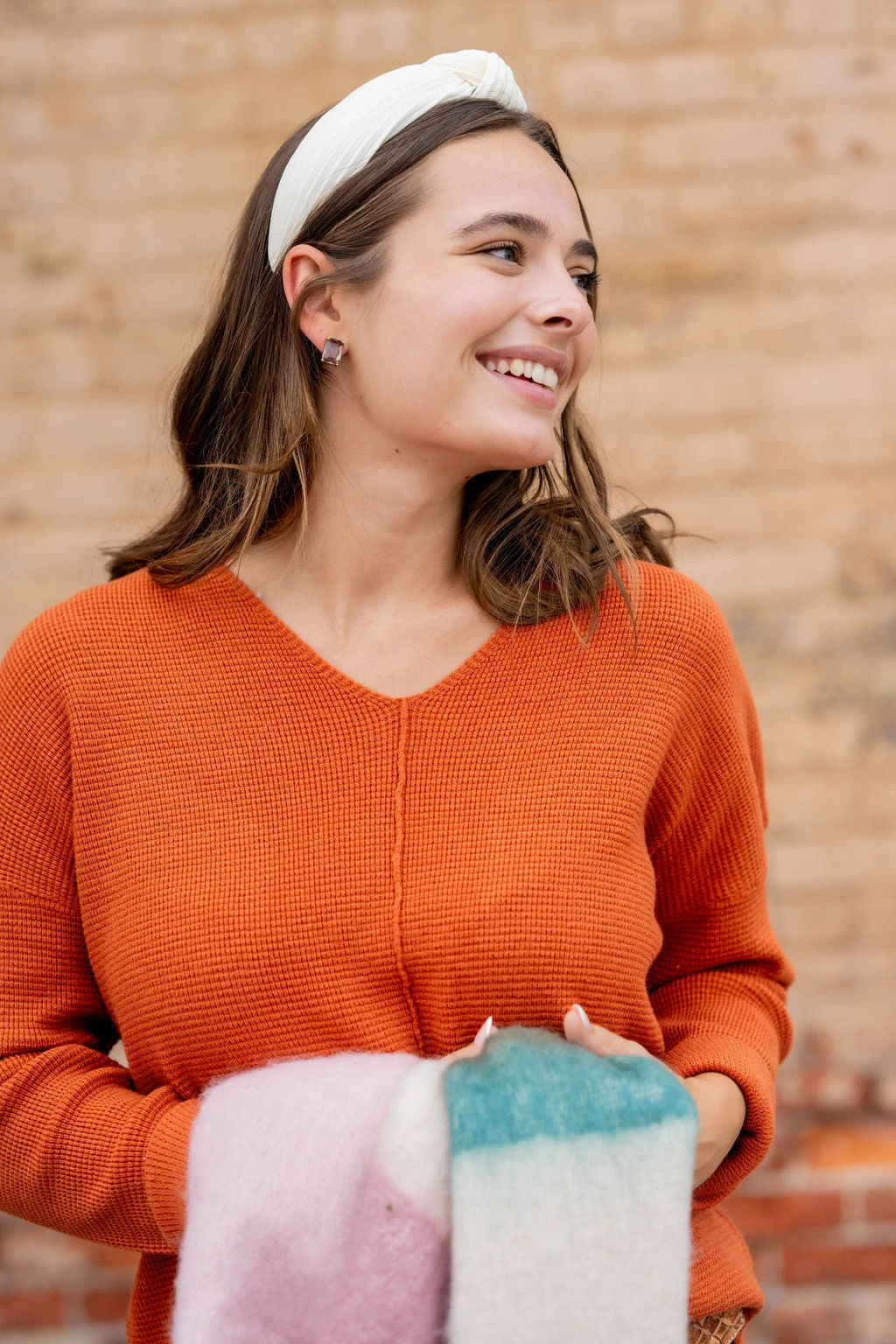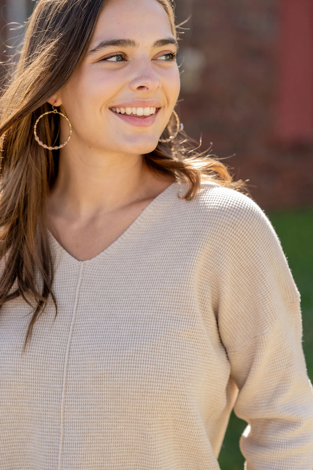 A super soft and lightweight sweater set apart from the rest with a waffled textured, v-neckline, side slit, and a mid-seam detailing! Pair with denim and a statement necklace or cute pair of earrings for a more elevated look, or with joggers or leggings and a vest or shacket for a quick yet super cute on-the-go look!