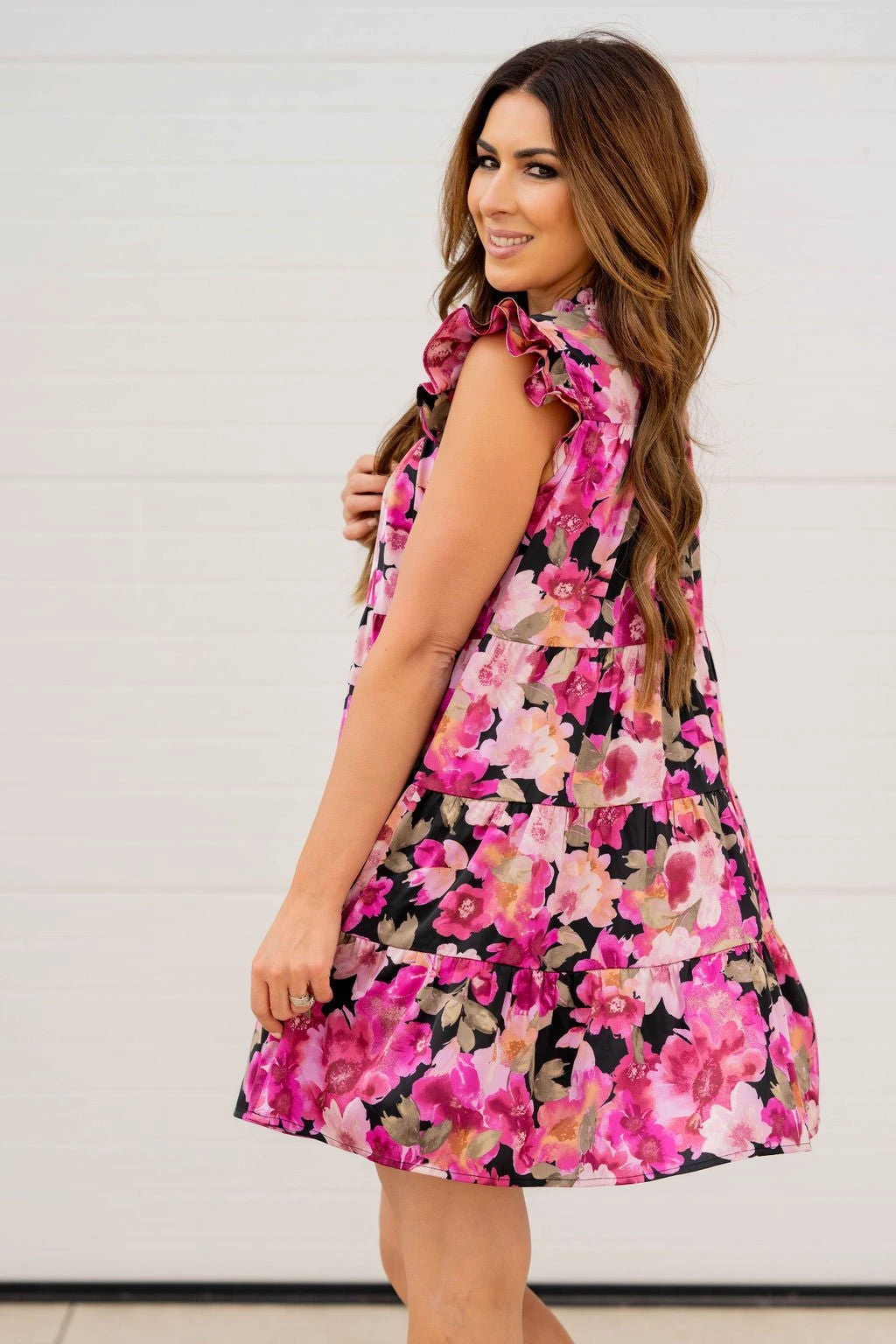 Feminine, Flirty, and oh so fun! This flowy-tiered style dress is sure to have you turning heads! Wear alone with your favorite sandals or pair with a blazer or cardigan and boots for the cooler months!