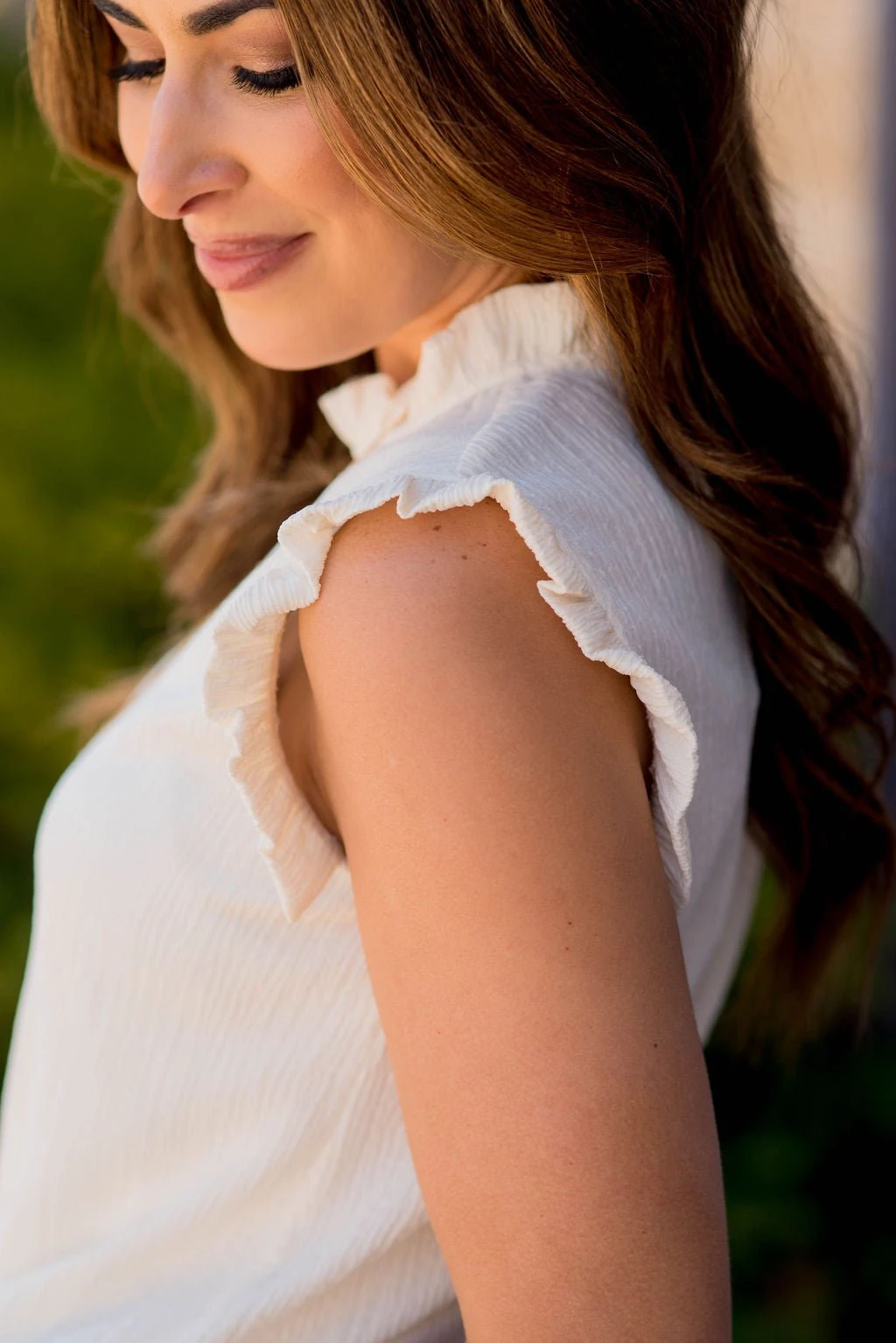 Everything looks better with ruffles! The subtle wavy texture and the ruffle trim accents on this tank sets it apart from the rest! Tuck into your favorite high-waisted shorts or patterned skirt for those hot sunny days or use as a layering piece with your favorite cardigan or shacket for the cooler ones!