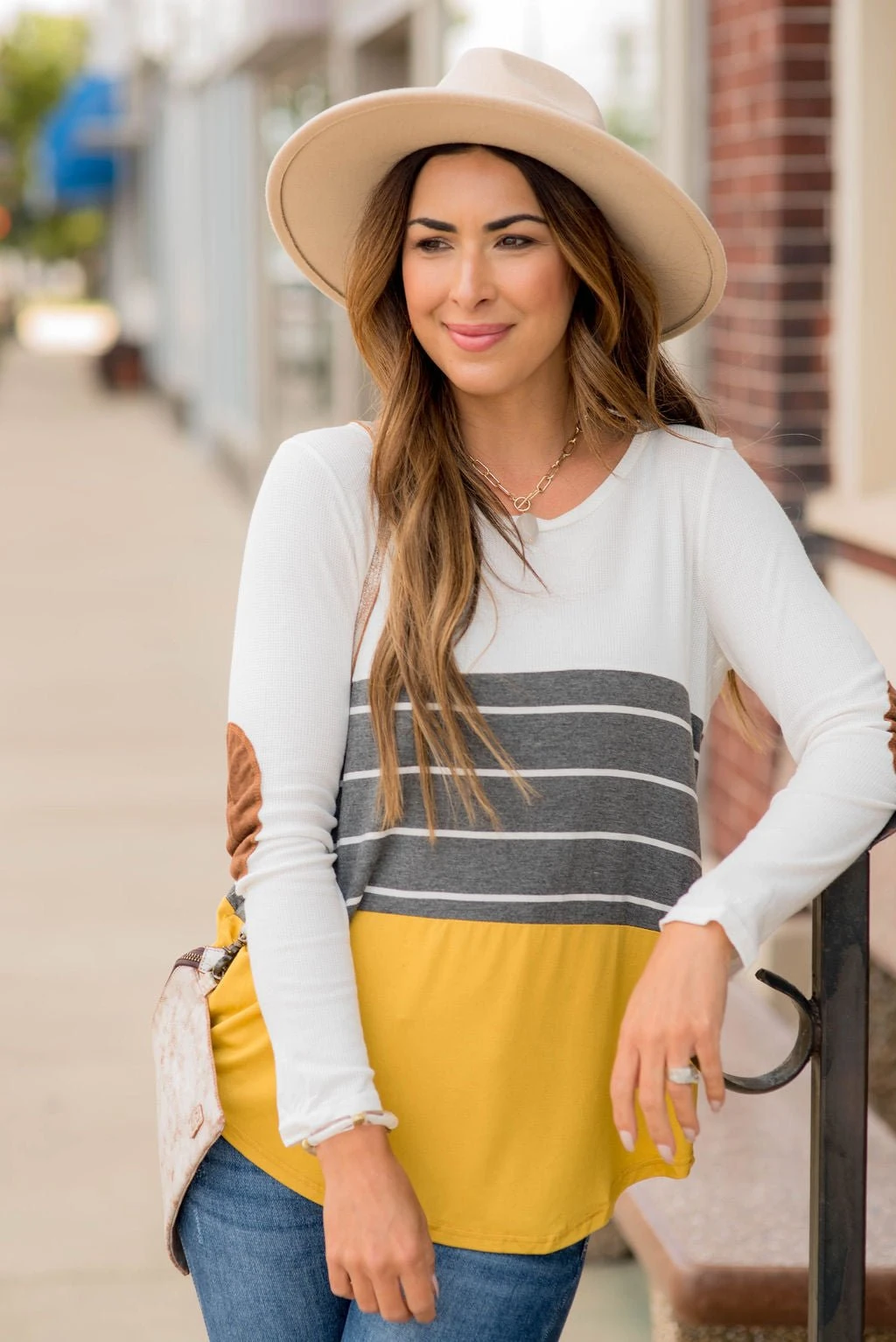 These blocked elbow patch long sleeve tees are going fast! They are very comfortable to wear by itself or even match a cardigan to go over top!