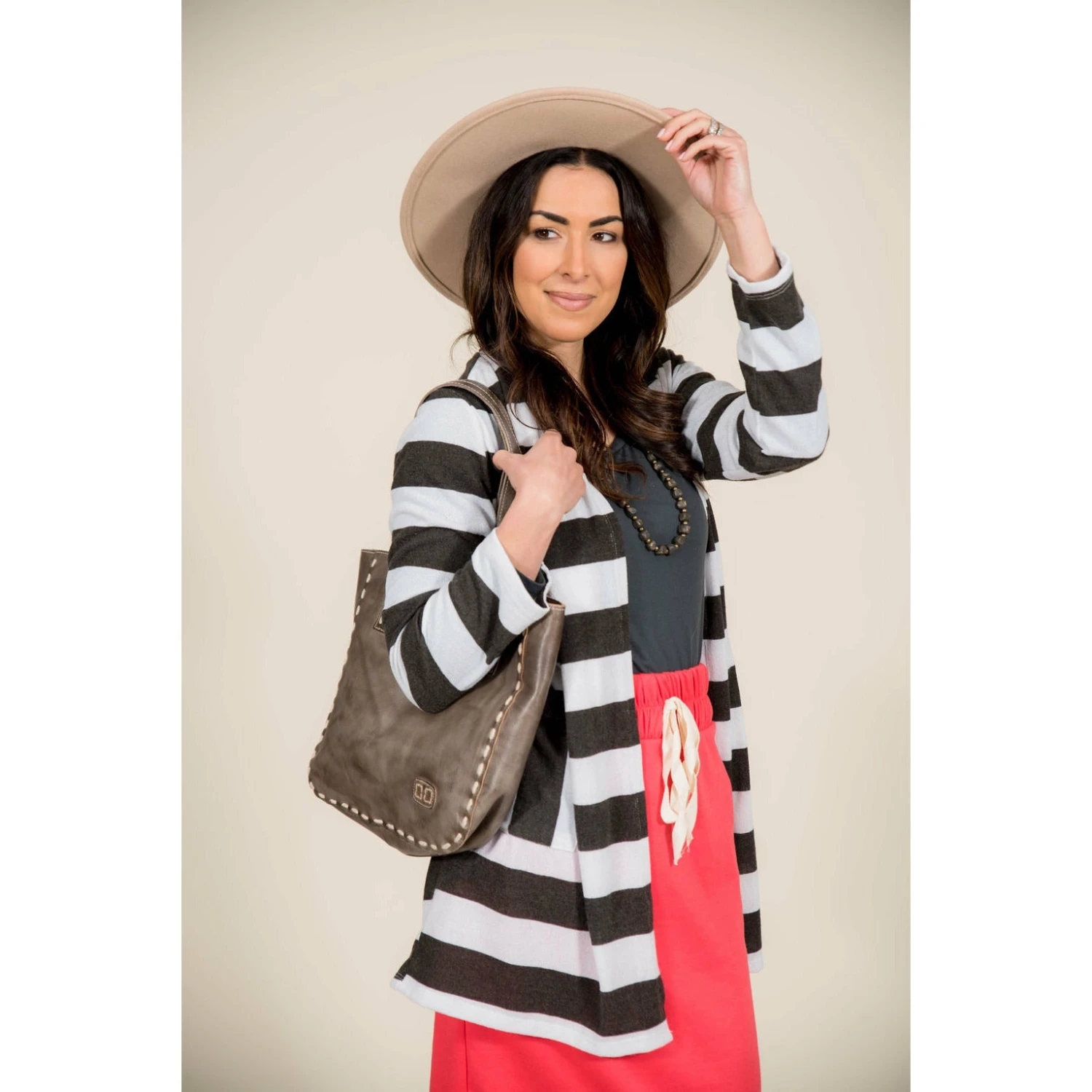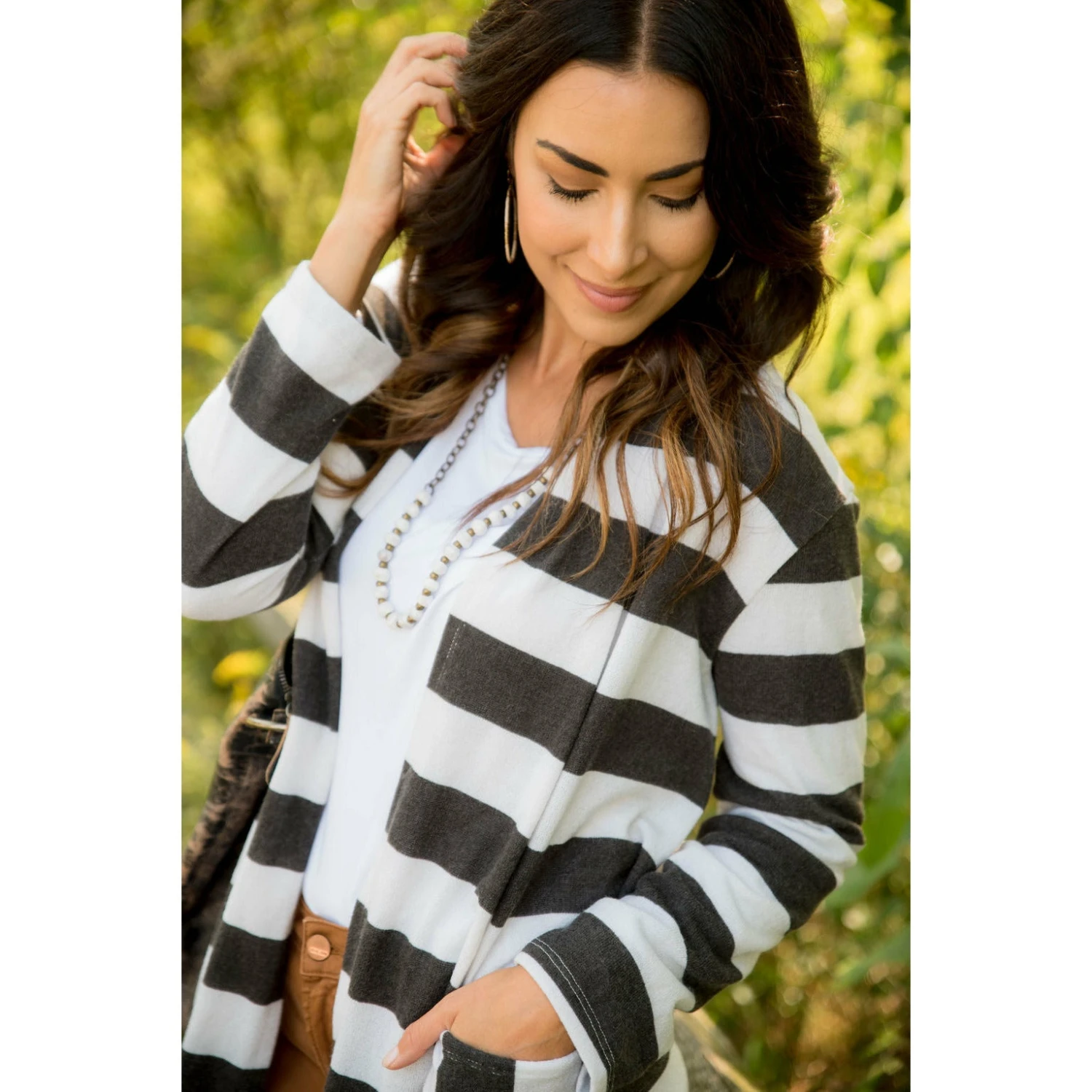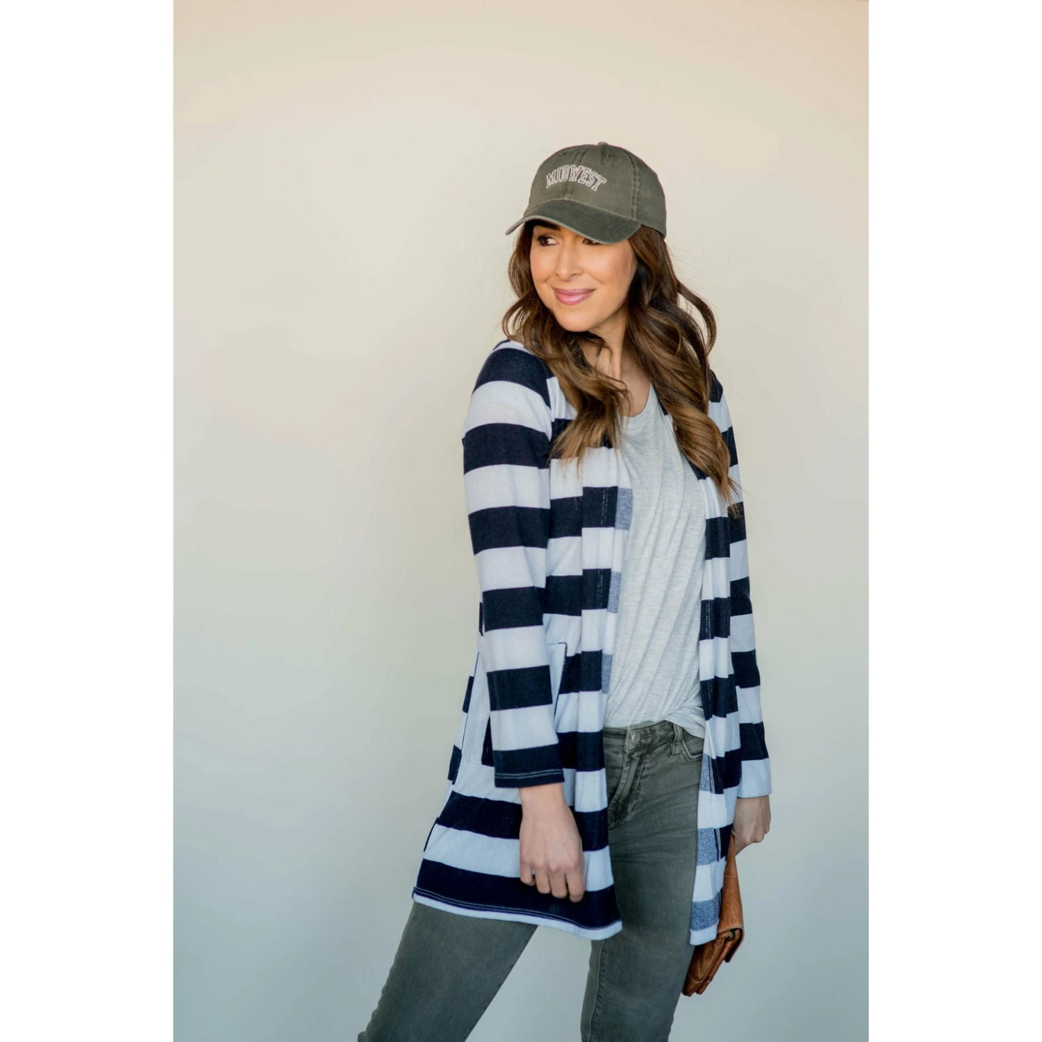 This over sized cardigan is comfortable and light! It has pockets and is perfect to just throw on and go out the door!