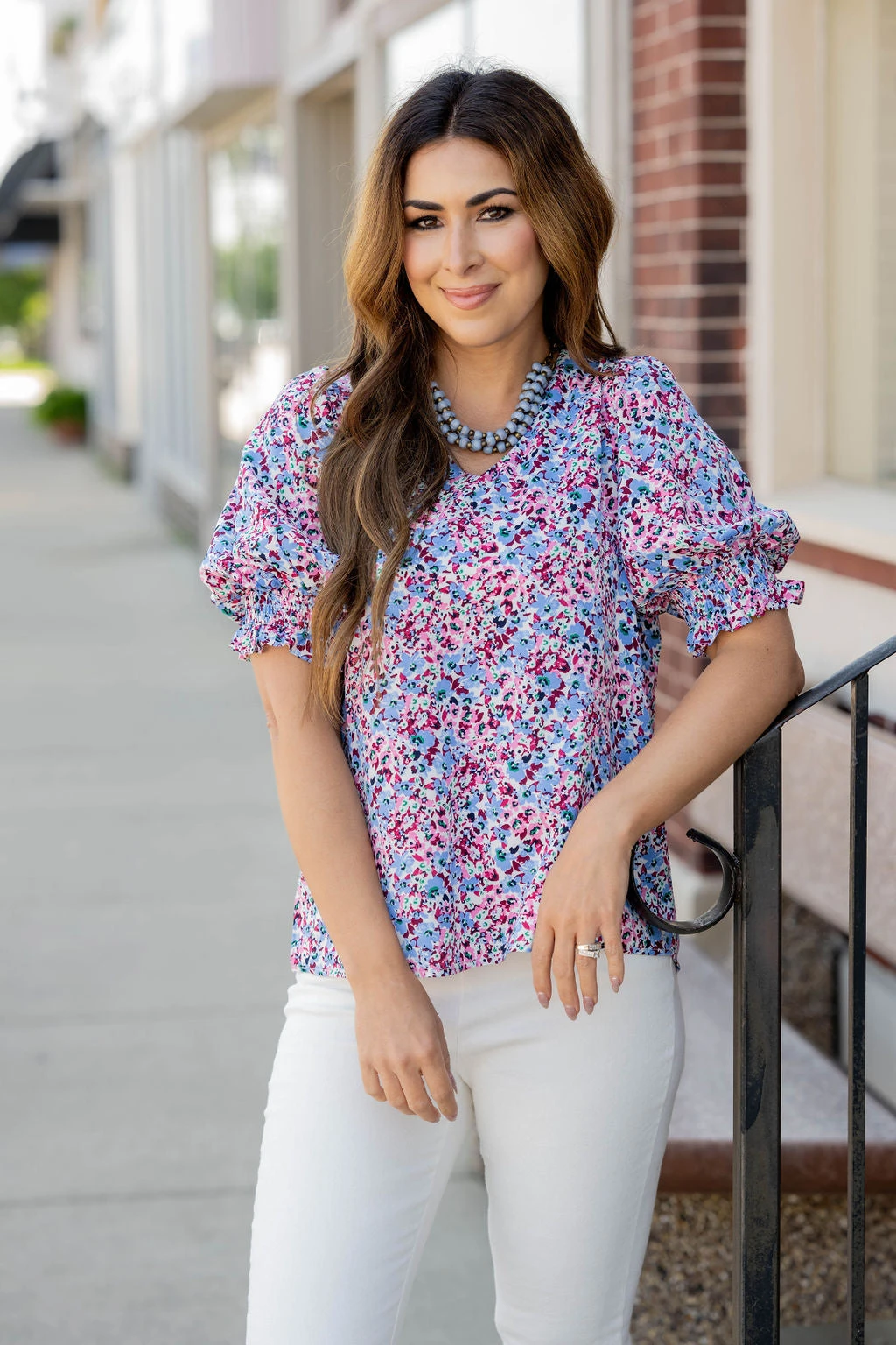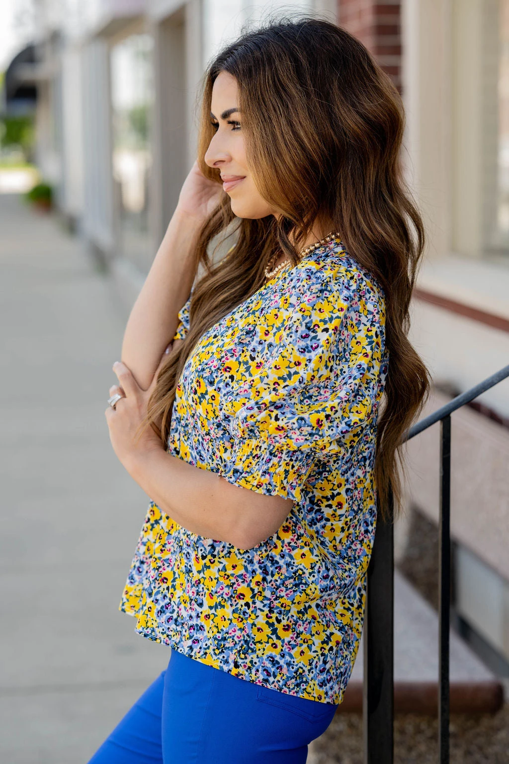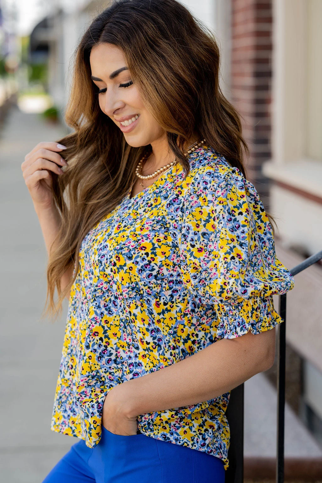 The bright and bold colors with the fun puff sleeves really sets this blouse apart from the rest! Pair with shorts or a skirt in the warmer months or with denim or our Betsey’s Jeggings in the cooler ones! Don’t forget your favorite accessories for a complete Betsey’s look!