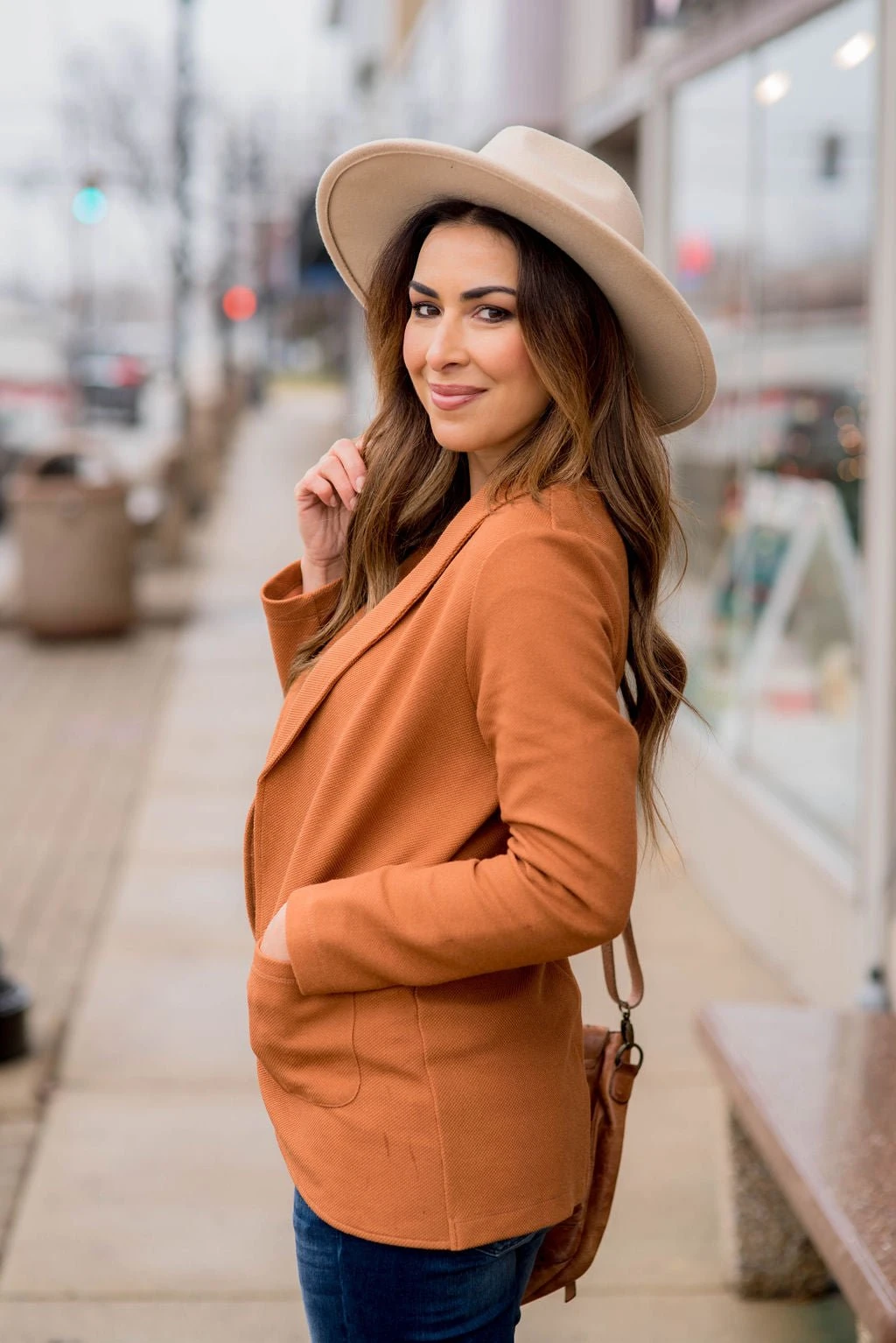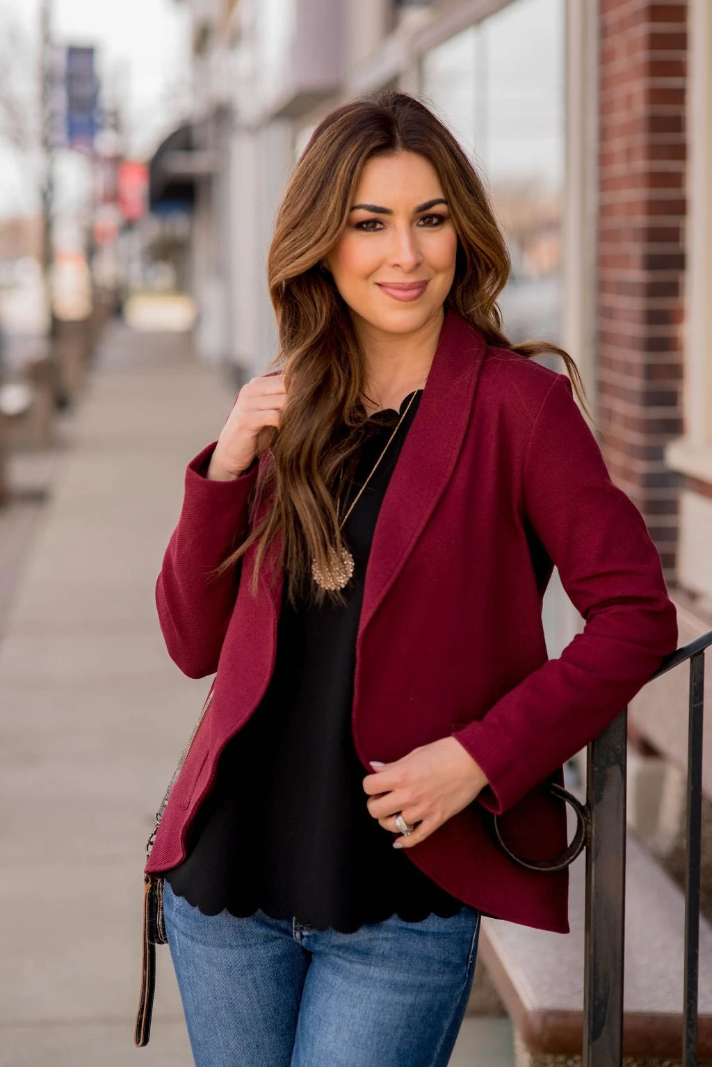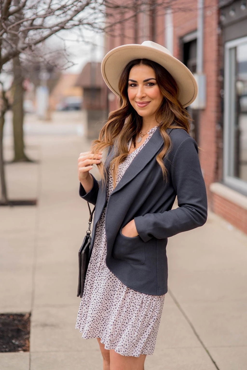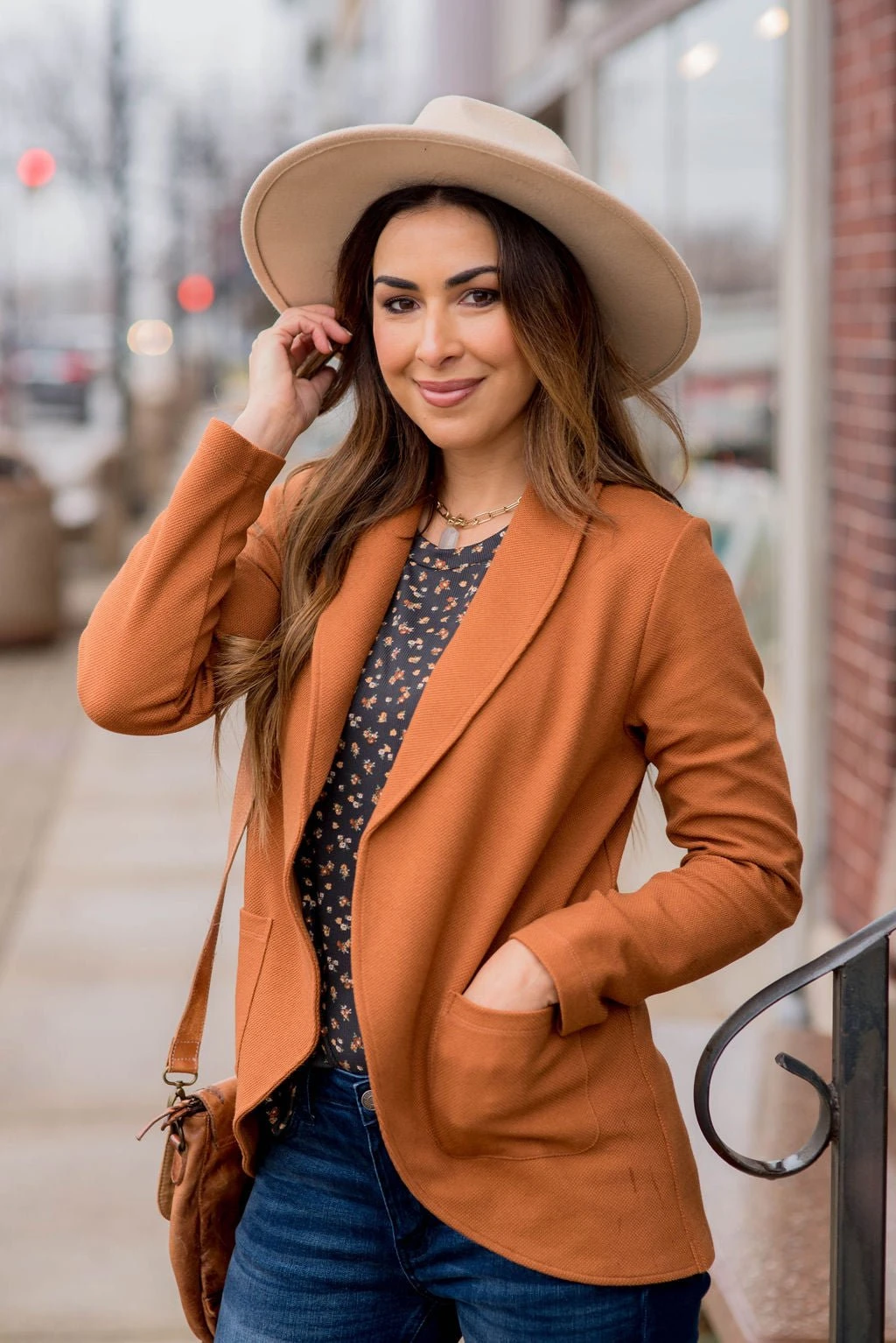 This simple blazer is elevated with a woven texture and pockets! Pair with a dress or blouse and Betsey’s Jeggings combo for the office or the classroom or with a graphic tee and denim or a basic tee with leggings for a quick yet cute on-the-go look! We love that this can transition you through all seasons!