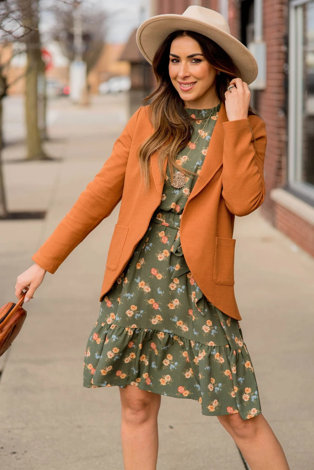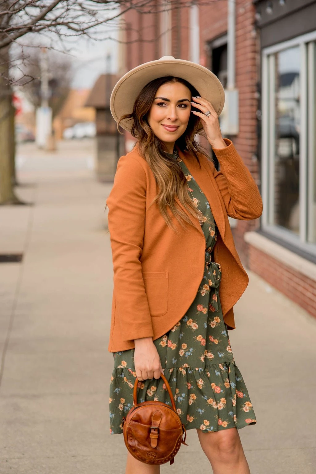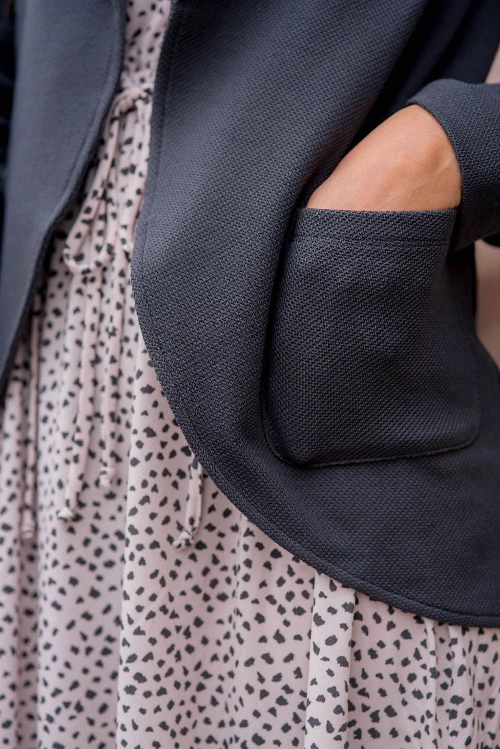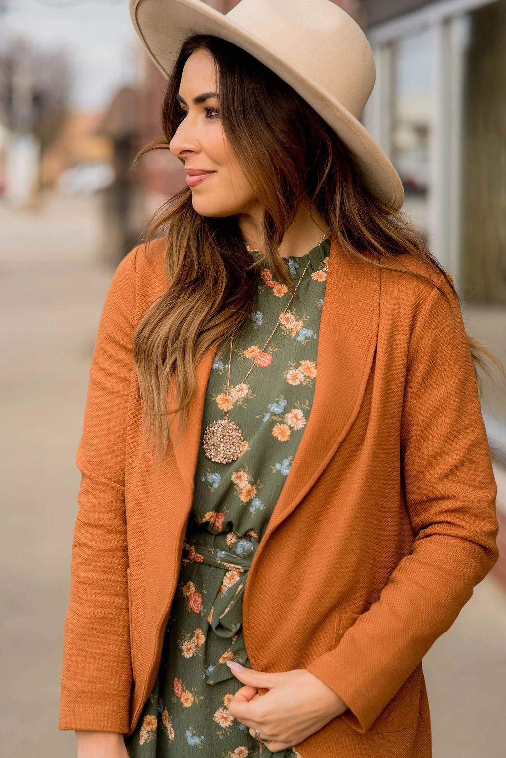 This simple blazer is elevated with a woven texture and pockets! Pair with a dress or blouse and Betsey’s Jeggings combo for the office or the classroom or with a graphic tee and denim or a basic tee with leggings for a quick yet cute on-the-go look! We love that this can transition you through all seasons!
